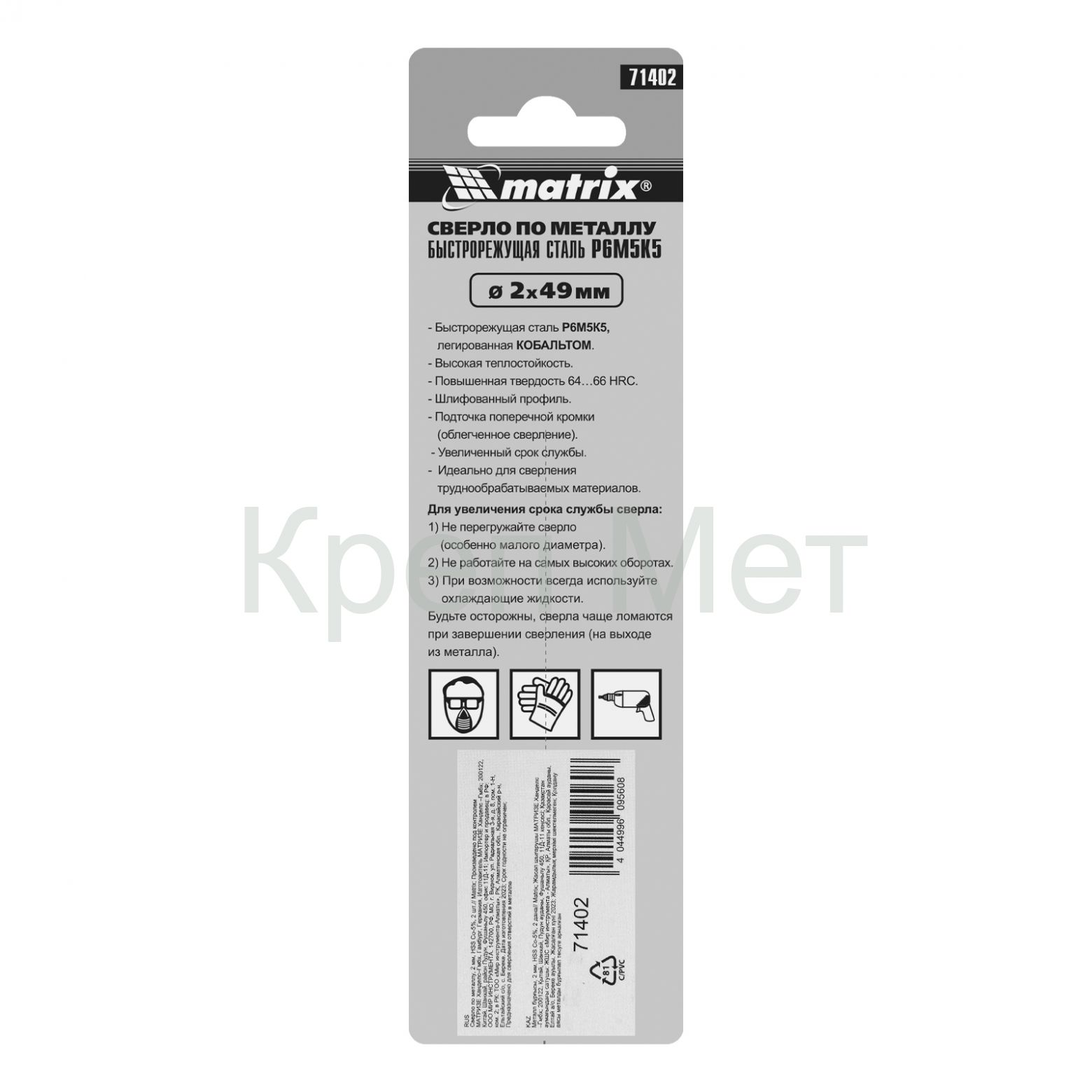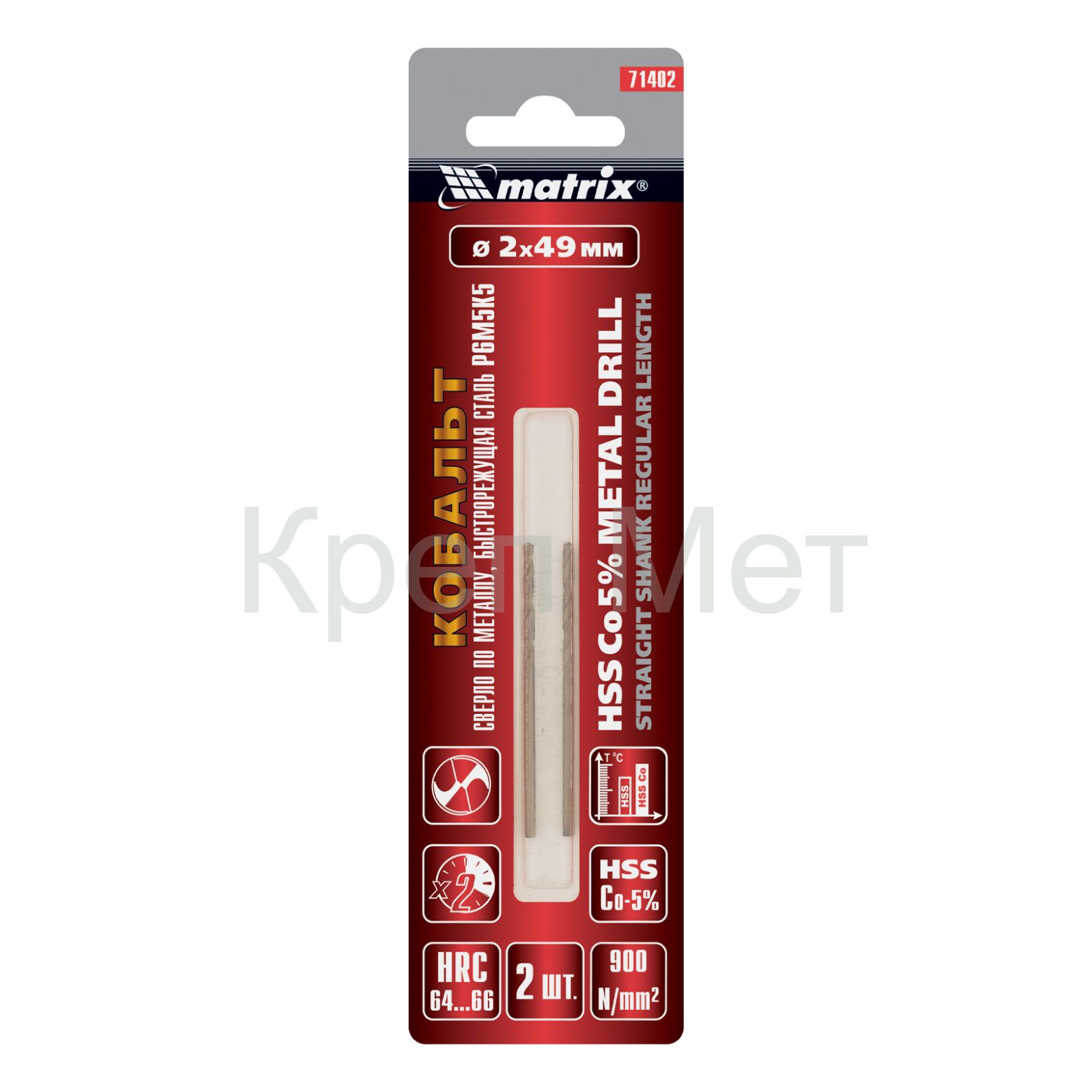 Сверло по металлу, 2 мм, HSS Co-5%, 2 шт Matrix