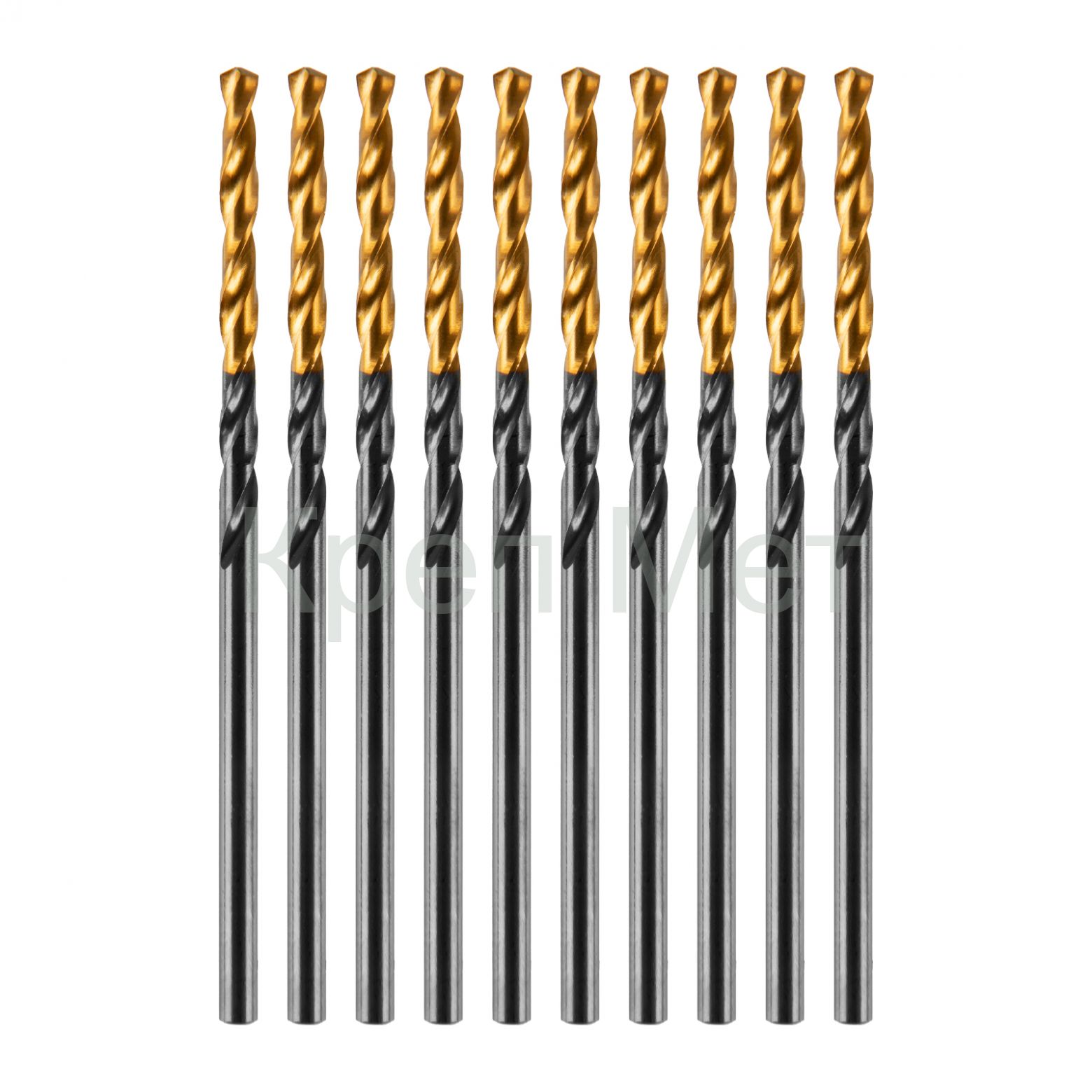 Сверло по металлу, 2 мм, HSS-Tin, Golden Tip, 10 шт. Denzel