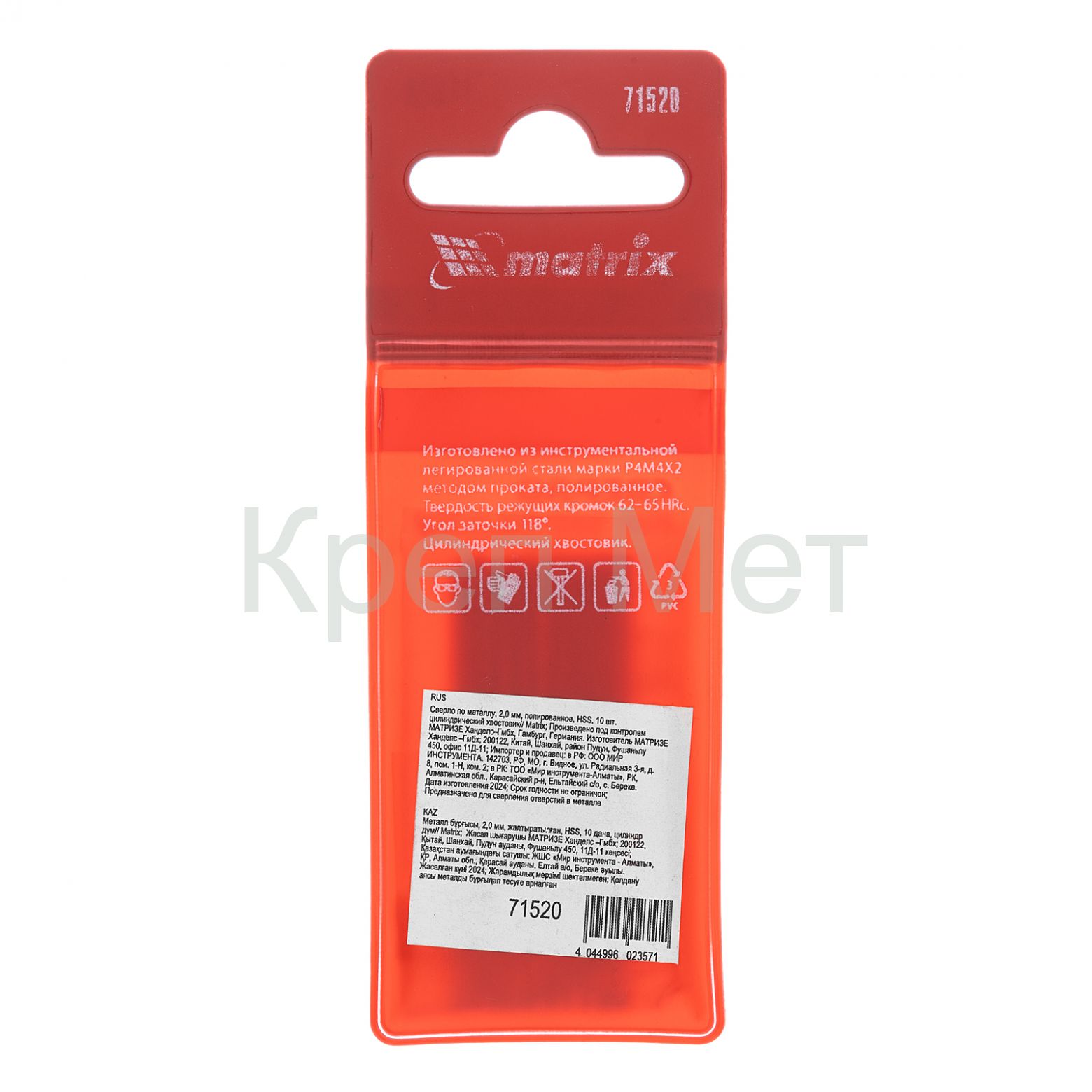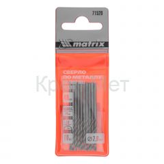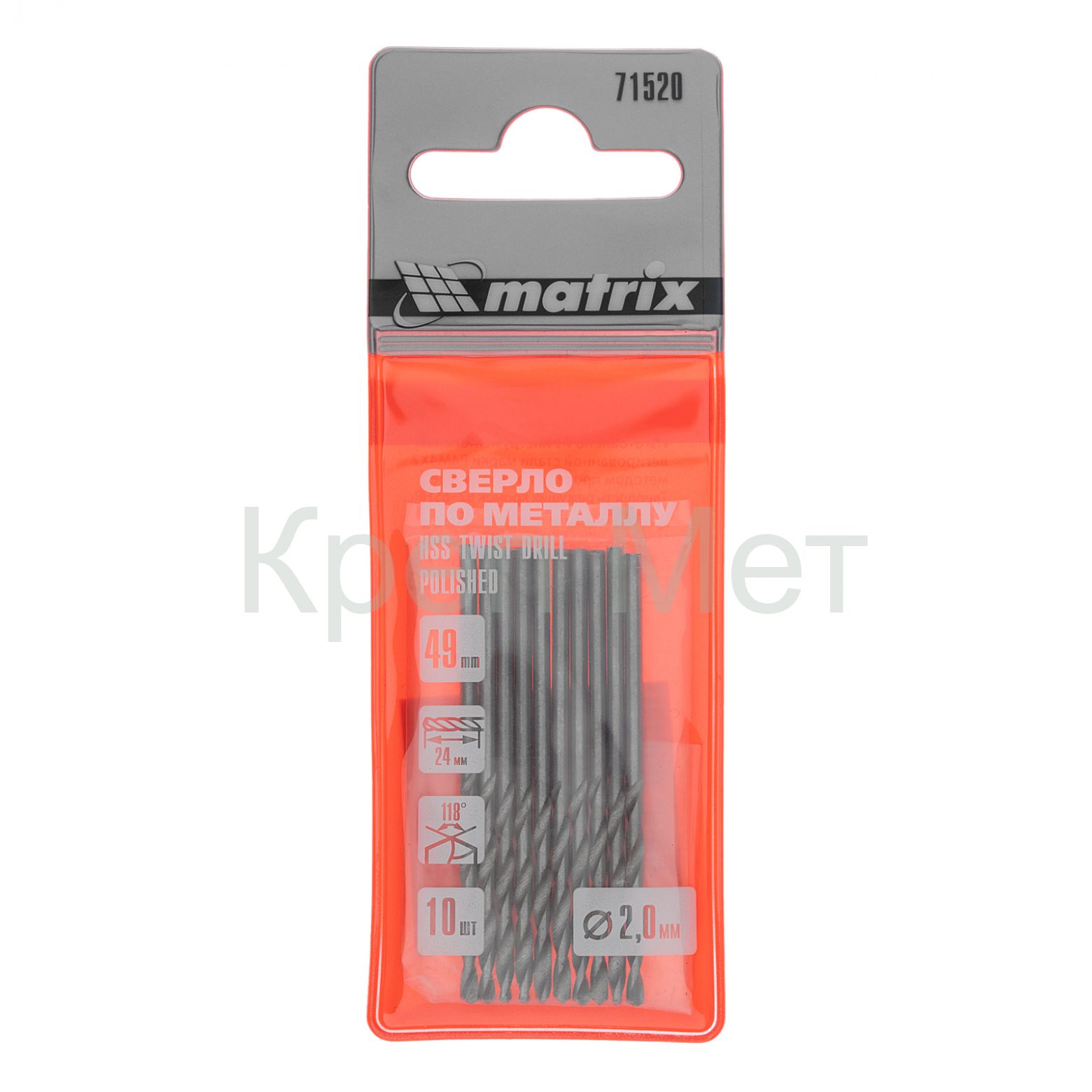 - Сверло по металлу, 2 мм, полированное, HSS, 10 шт, цилиндрический хвостовик Matrix