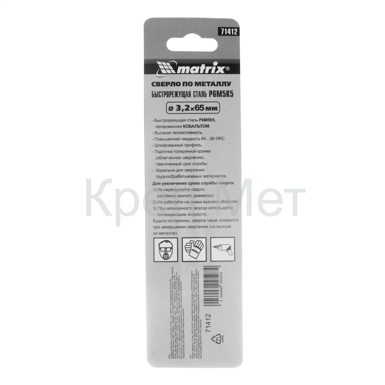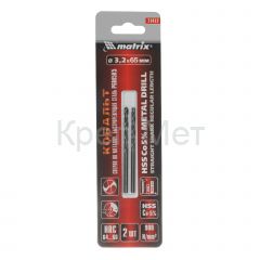 - Сверло по металлу, 3.2 мм, HSS Co-5%, 2 шт Matrix