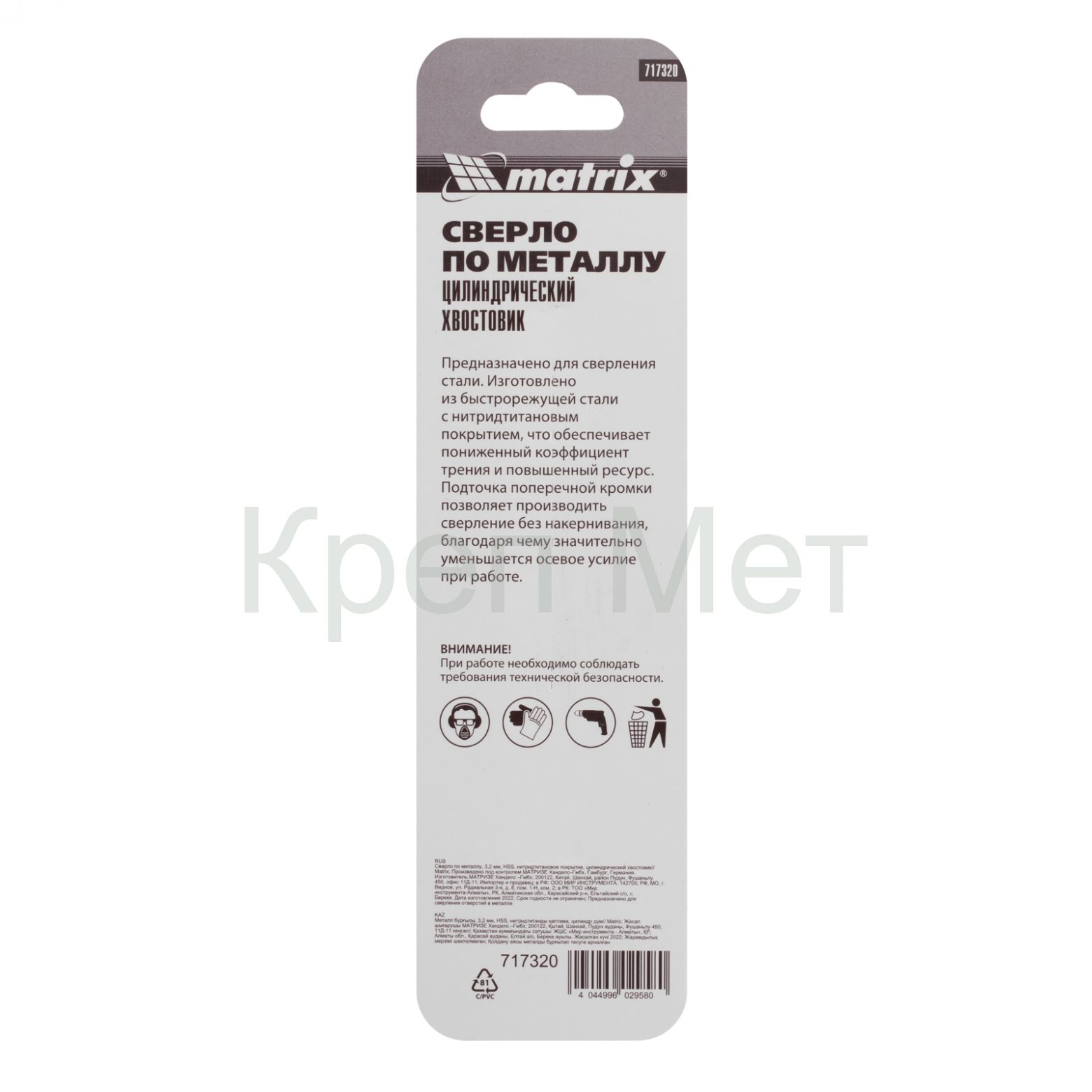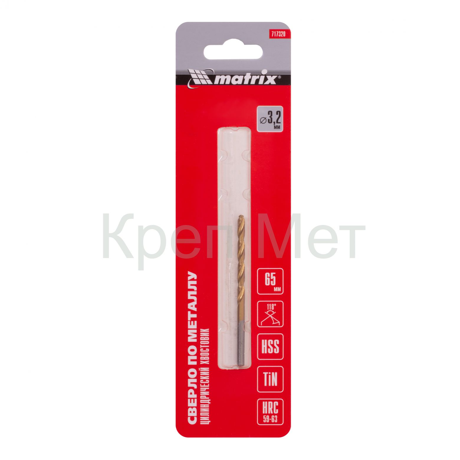 - Сверло по металлу, 3.2 мм, HSS, нитридтитановое покрытие, цилиндрический хвостовик Matrix