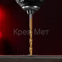- Надежность — сверло изготовлено из универсальной быстрорежущей стали HSS, нитридтитановое покрытие защищает от коррозии и обеспечивает стойкость к перегреву.