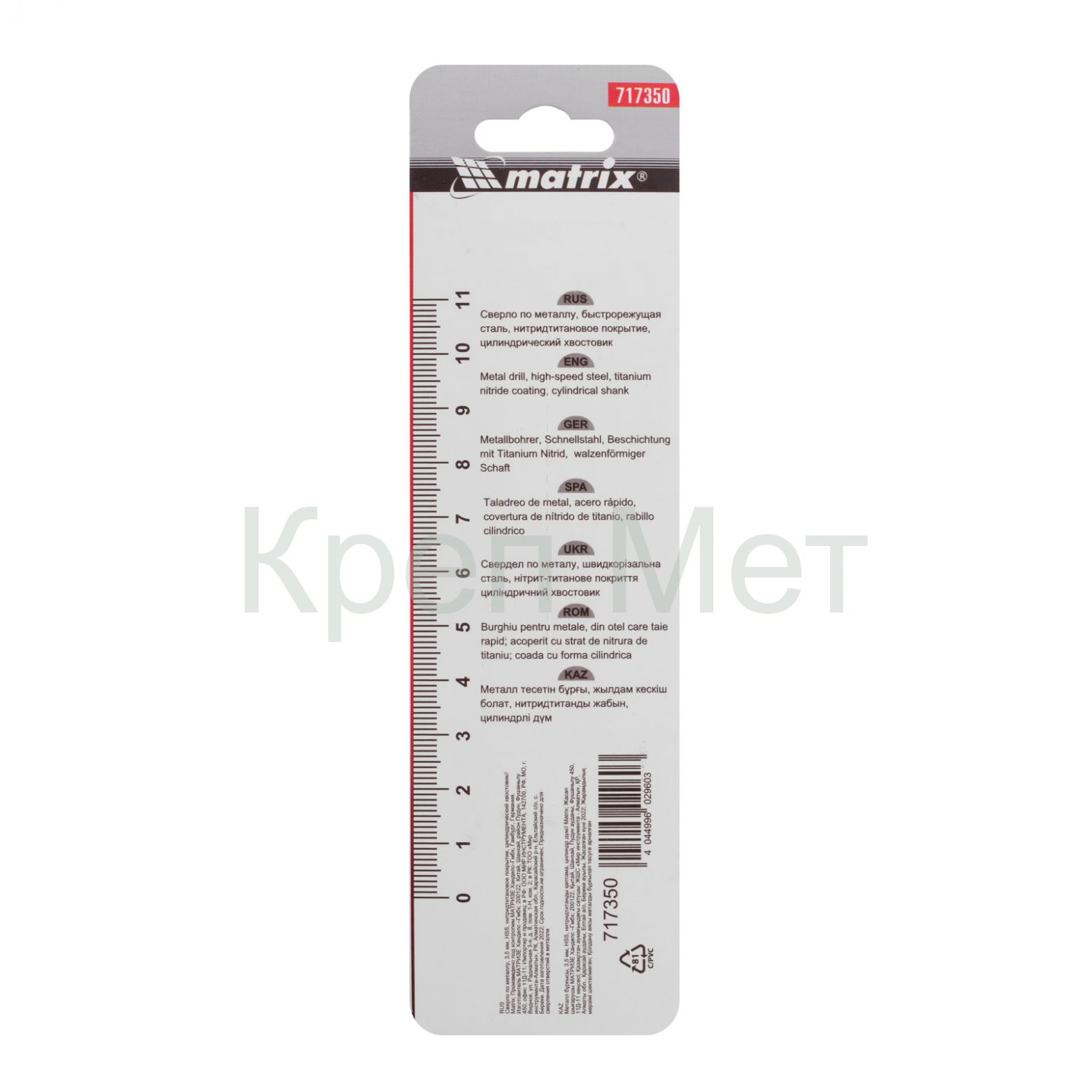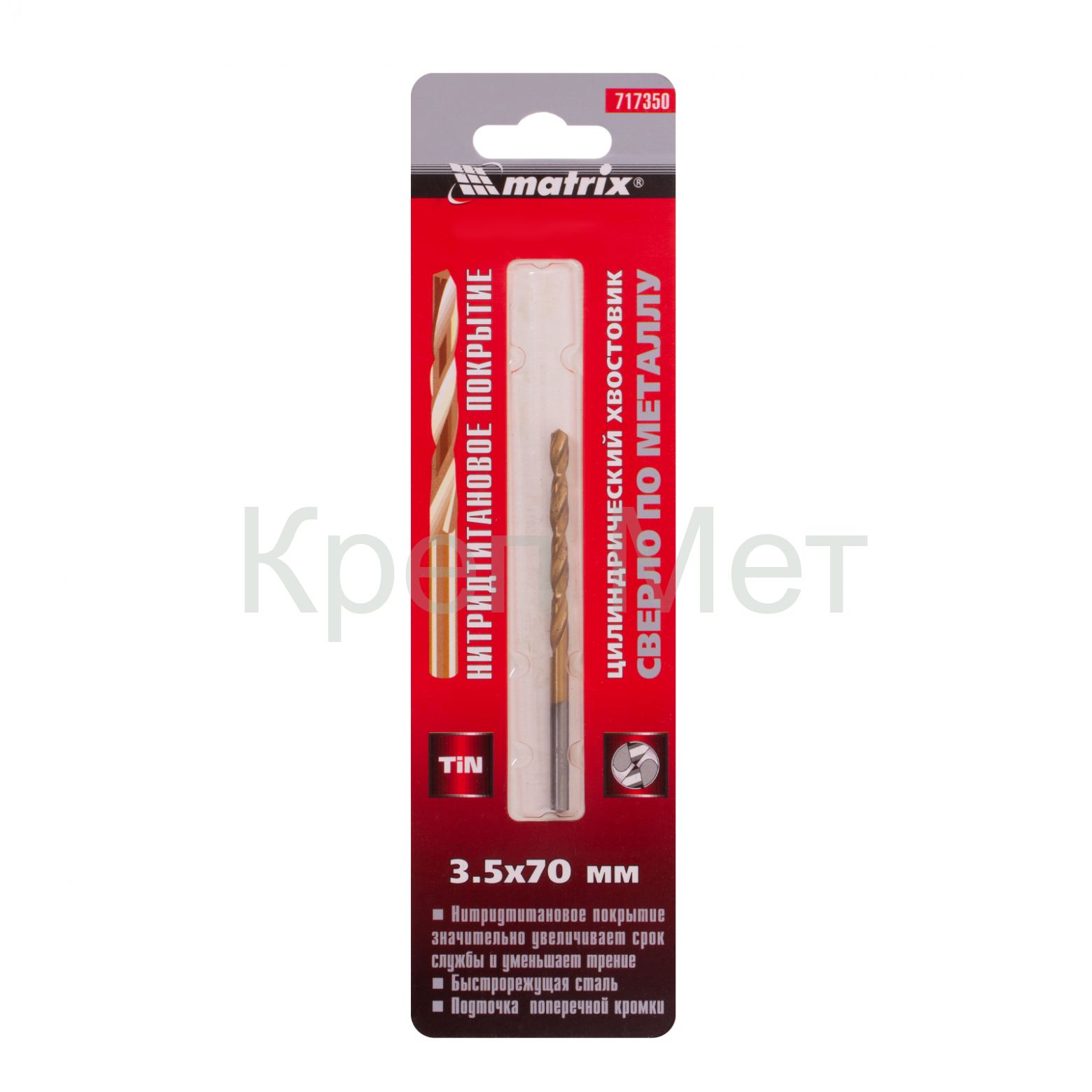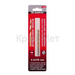 - Сверло по металлу, 3.5 мм, HSS, нитридтитановое покрытие, цилиндрический хвостовик Matrix