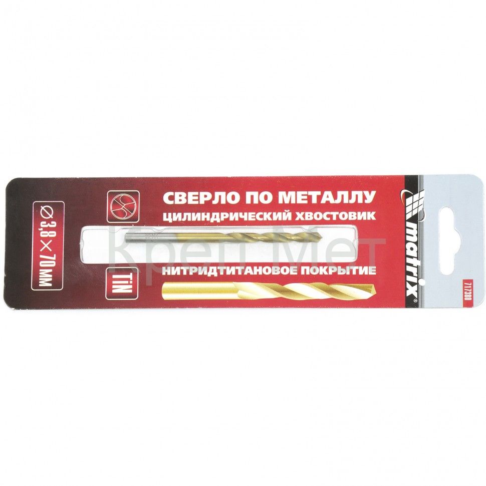 - Сверло по металлу, 3.8 мм, HSS, нитридтитановое покрытие, цилиндрический хвостовик Matrix