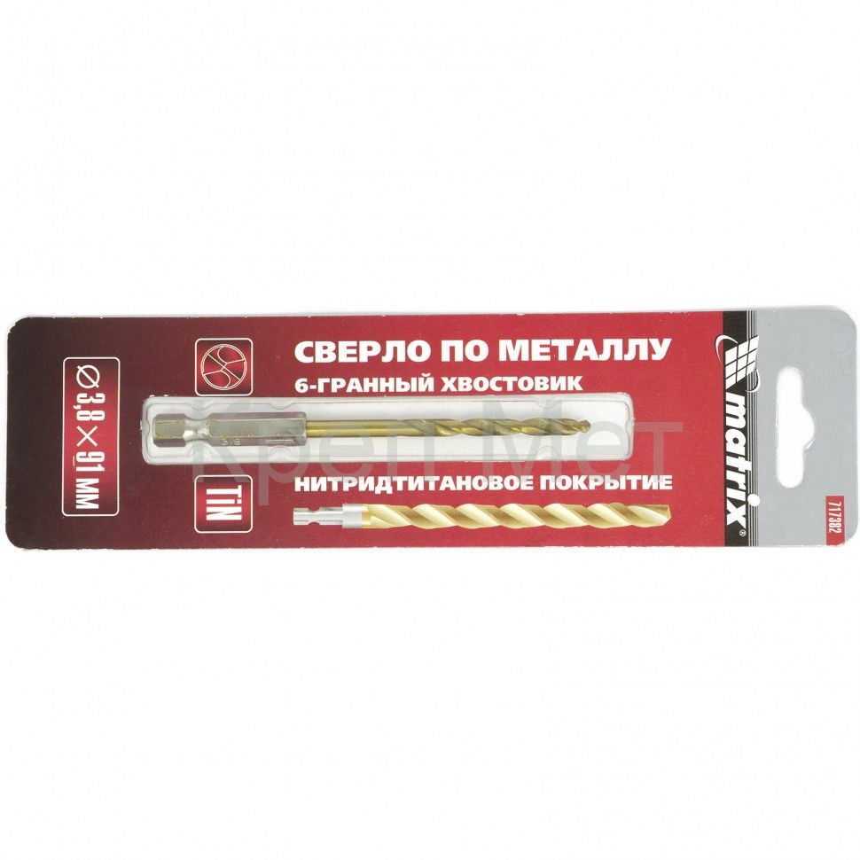 Сверло по металлу Matrix 717382 диаметром 3,8 мм, из стали HSS, с нитридтитановым покрытием и 6-гранным хвостовиком, предназначено для получения отверстий в черном металле, стали, чугуне и твердой бронзе. Устанавливается в патрон дрели.