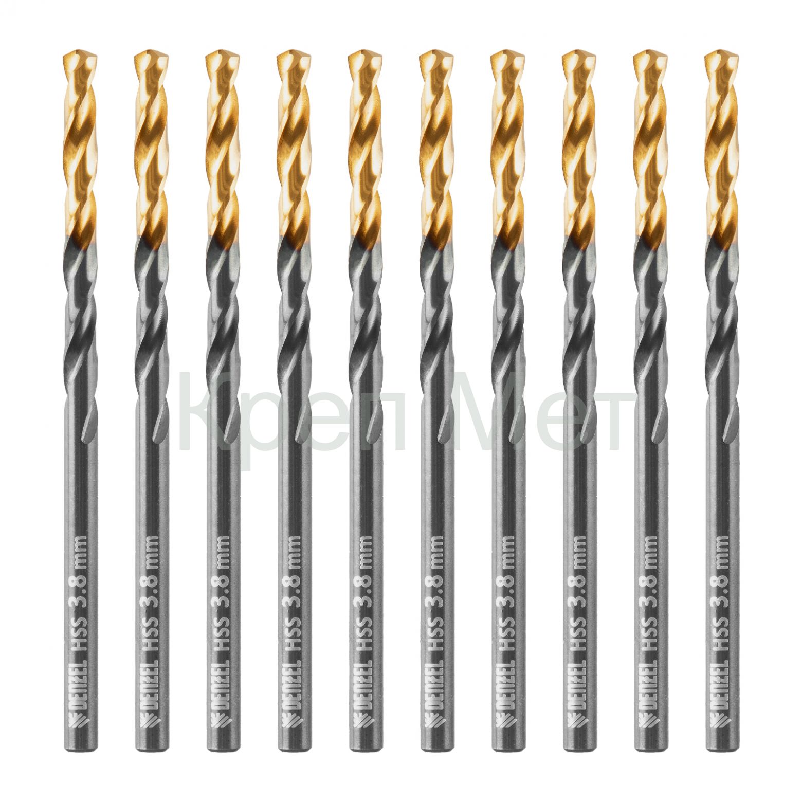Сверло по металлу, 3,8 мм, HSS-Tin, Golden Tip, 10 шт. Denzel