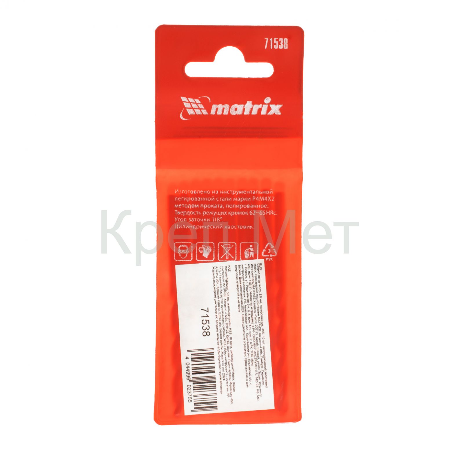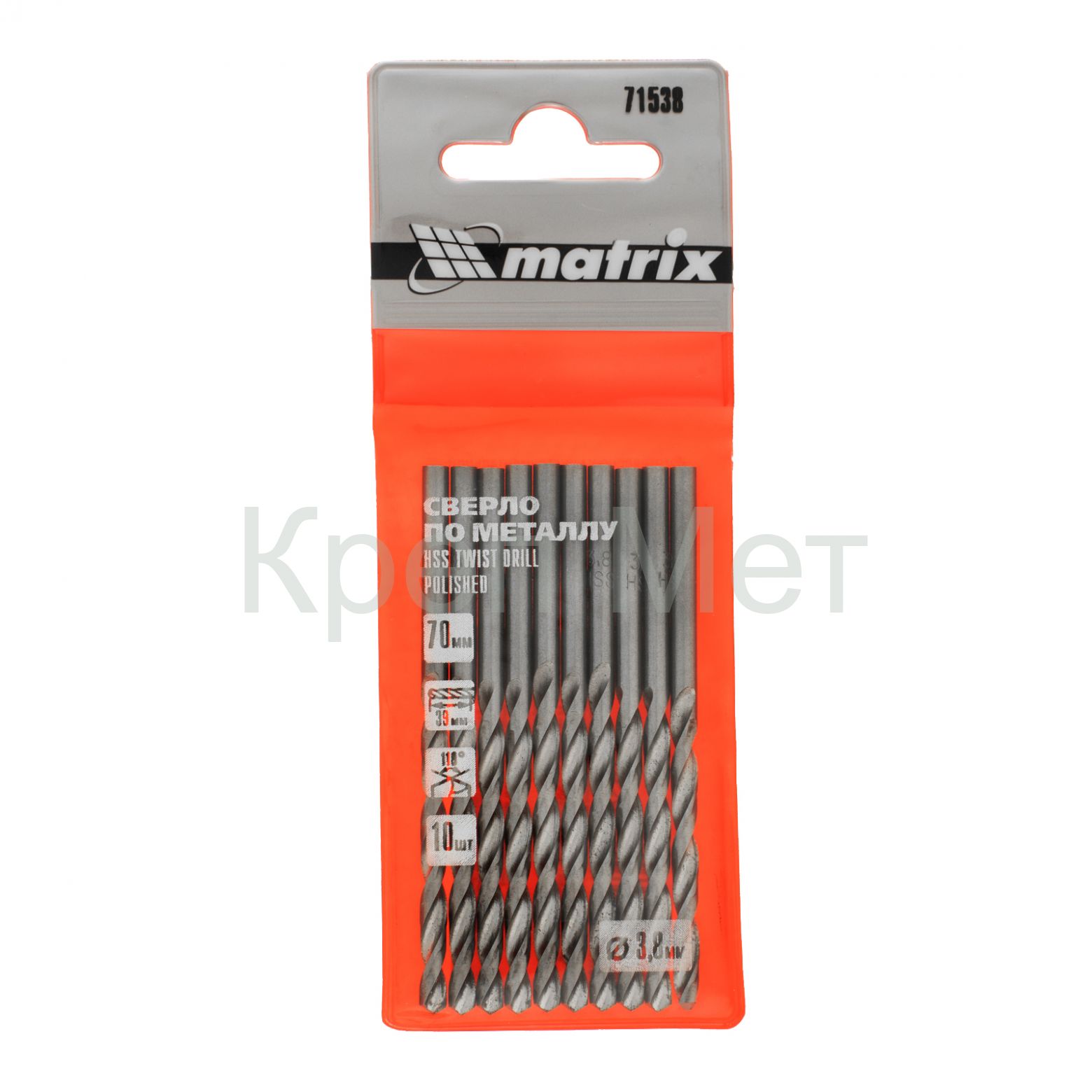 - Сверло по металлу, 3.8 мм, полированное, HSS, 10 шт, цилиндрический хвостовик Matrix