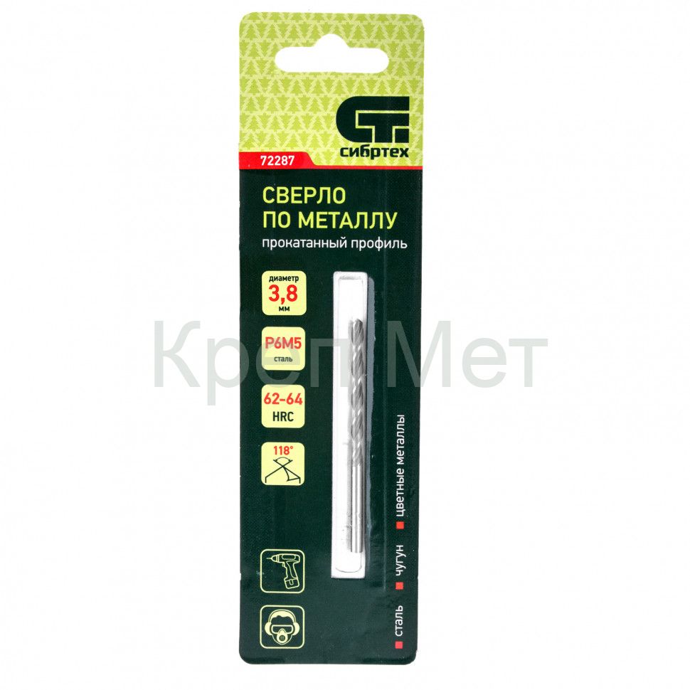 - Сверло по металлу, 3.8 мм, Р6М5 Сибртех