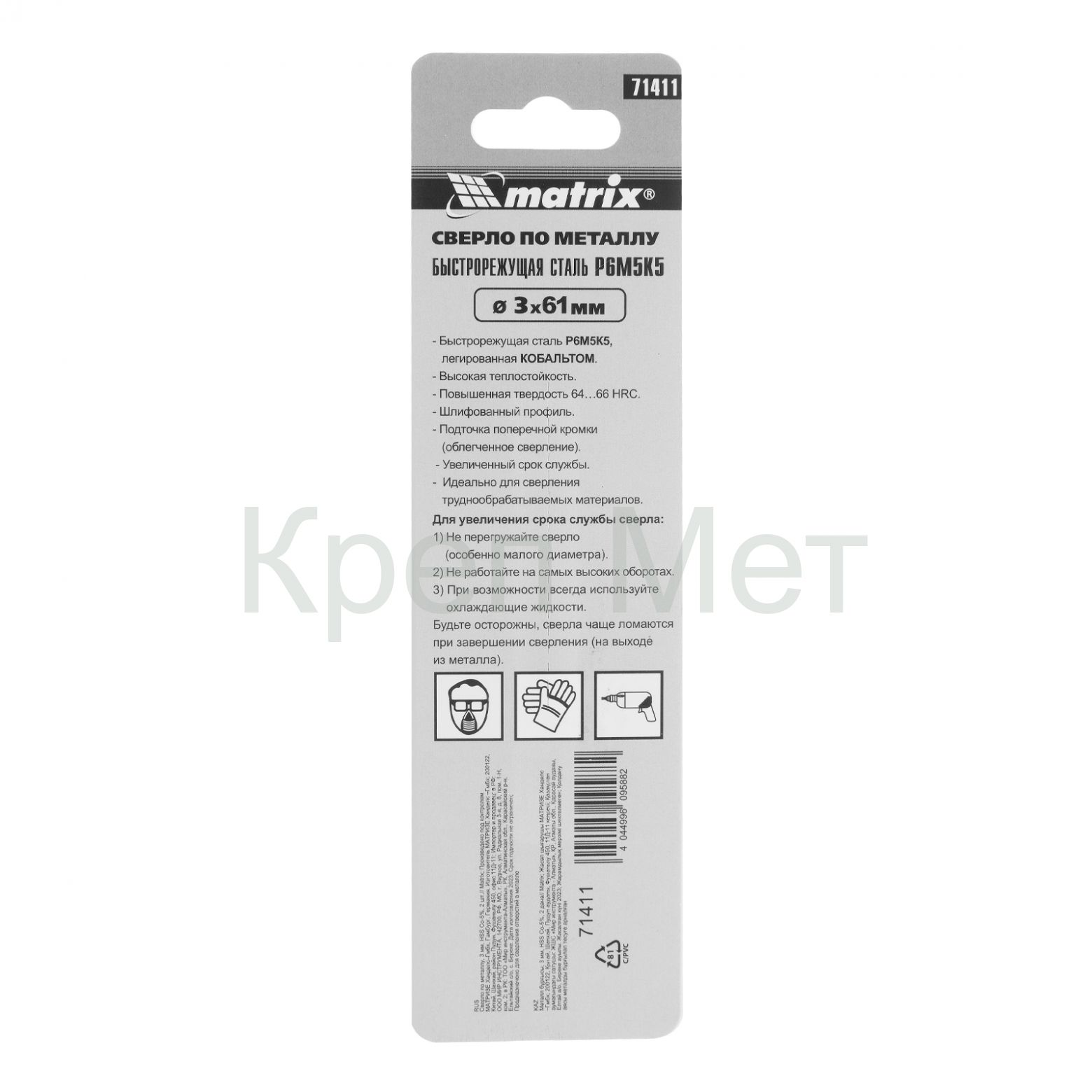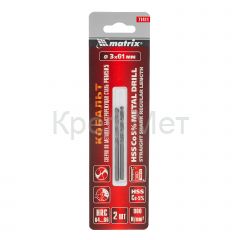- Сверло по металлу, 3 мм, HSS Co-5%, 2 шт Matrix