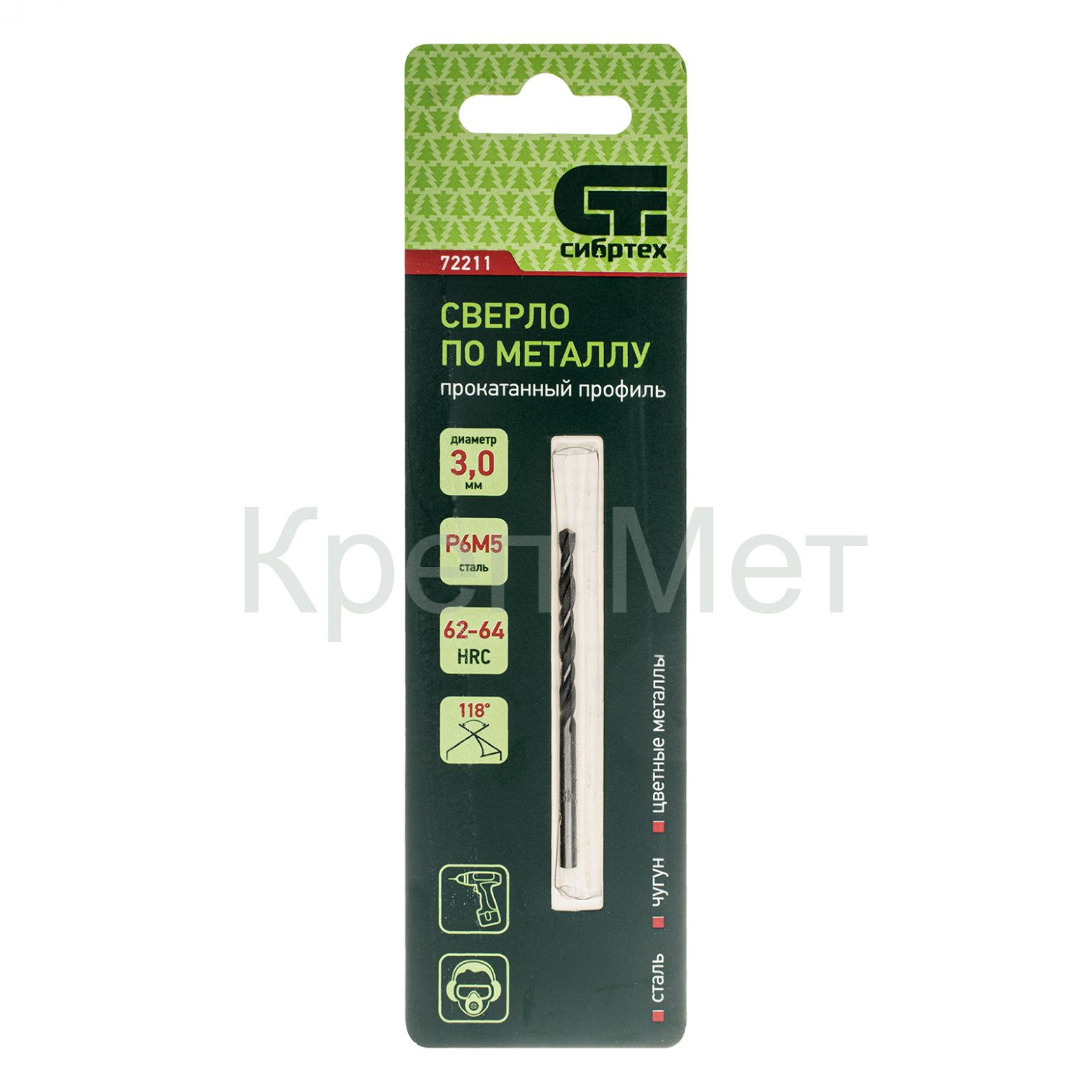Сверло по металлу Сибртех 72211 диаметром 3,0 мм, имеет угол заточки 118°, оптимальный для получения отверстий в черных и тяжелых металлах, в том числе стали, чугуне и твердой бронзе. Отличается наиболее выгодной стоимостью по сравнению с другими моделями из стали P6M5. Используется для выполнения монтажно-сборочных работ, будет полезно в быту.