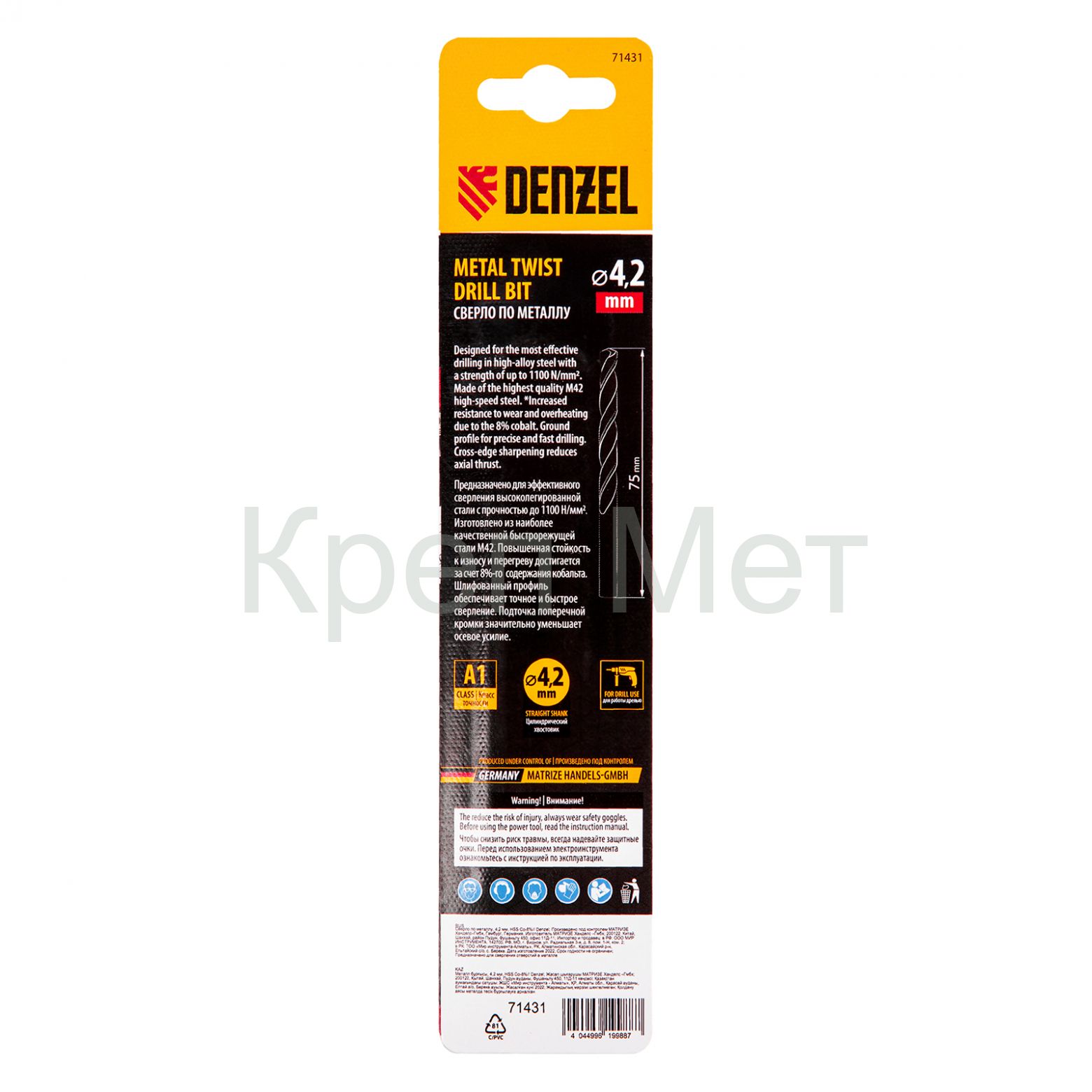- Сверло по металлу, 4,2 мм, HSS Co-8%// Denzel