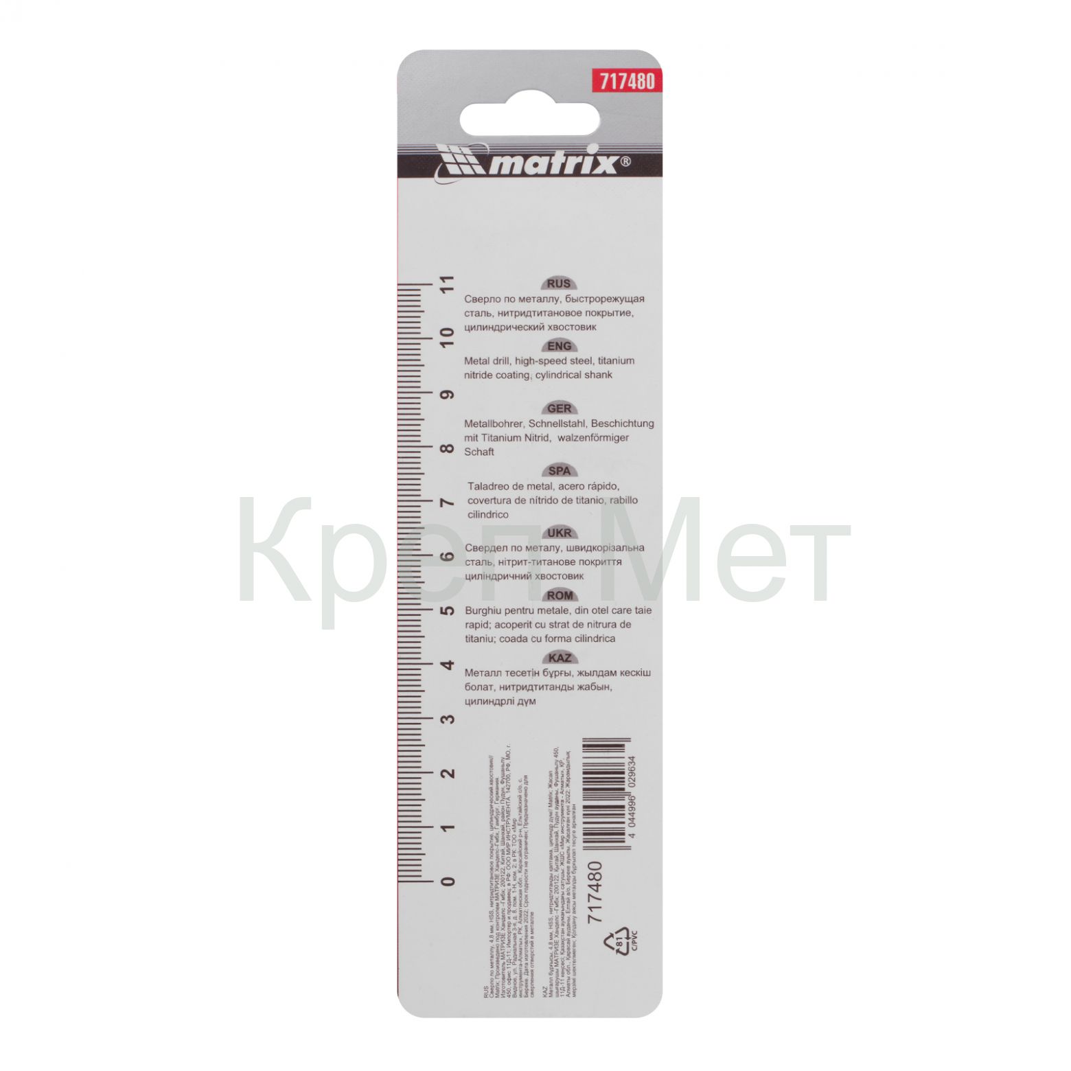 Сверло по металлу, 4.8 мм, HSS, нитридтитановое покрытие, цилиндрический хвостовик Matrix