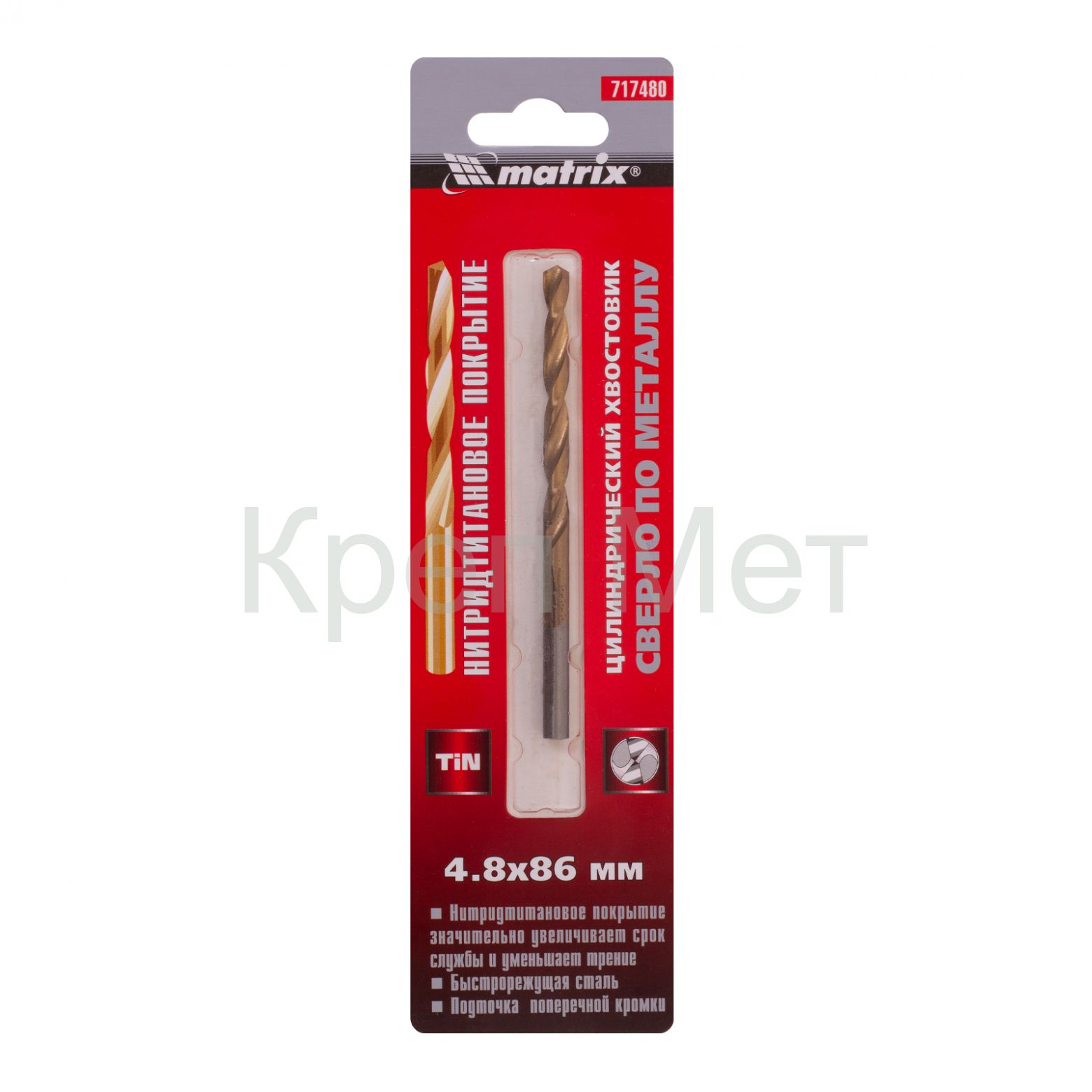 - Сверло по металлу, 4.8 мм, HSS, нитридтитановое покрытие, цилиндрический хвостовик Matrix