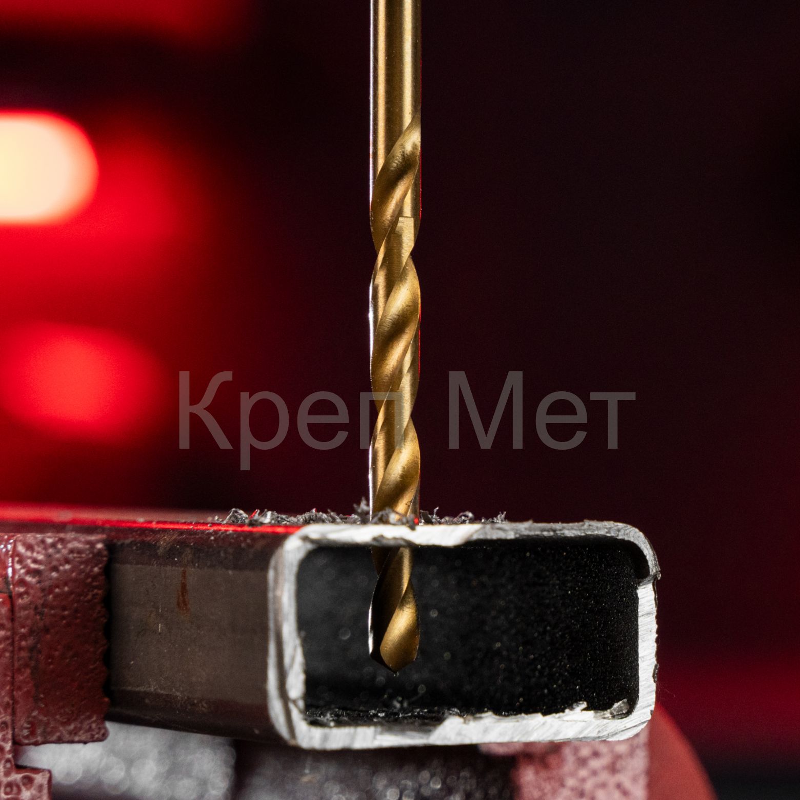 - Надежность — сверло изготовлено из универсальной быстрорежущей стали HSS, нитридтитановое покрытие защищает от коррозии и обеспечивает стойкость к перегреву.