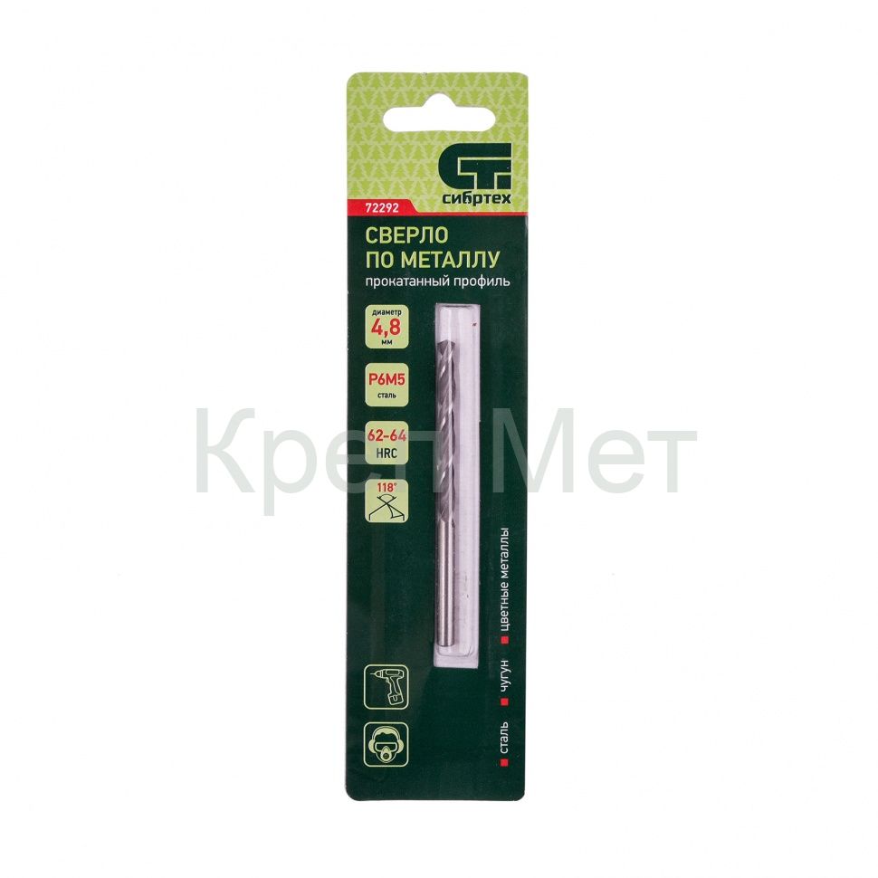 Сверло по металлу, 4.8 мм, Р6М5 Сибртех