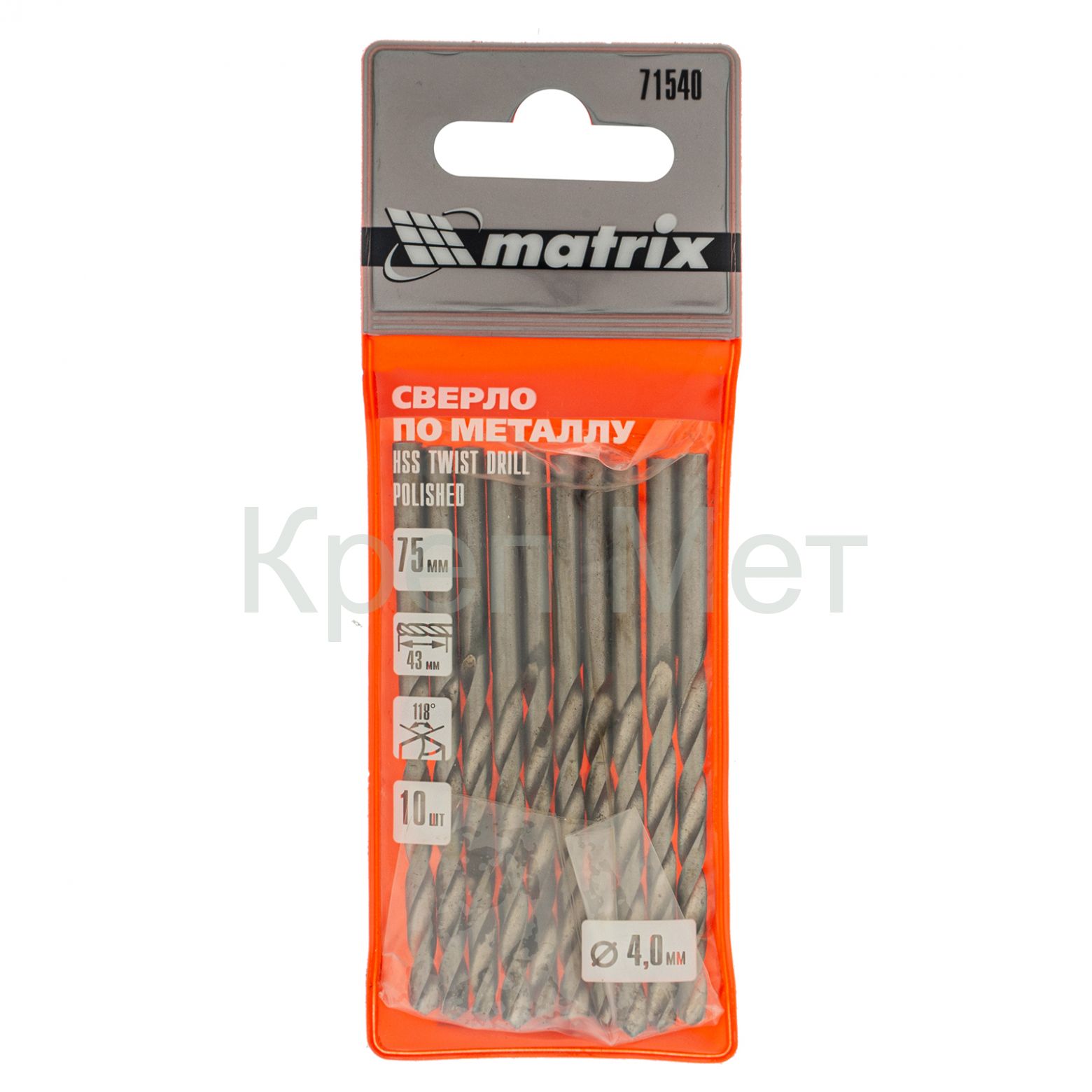 - Сверло по металлу, 4 мм, полированное, HSS, 10 шт, цилиндрический хвостовик Matrix