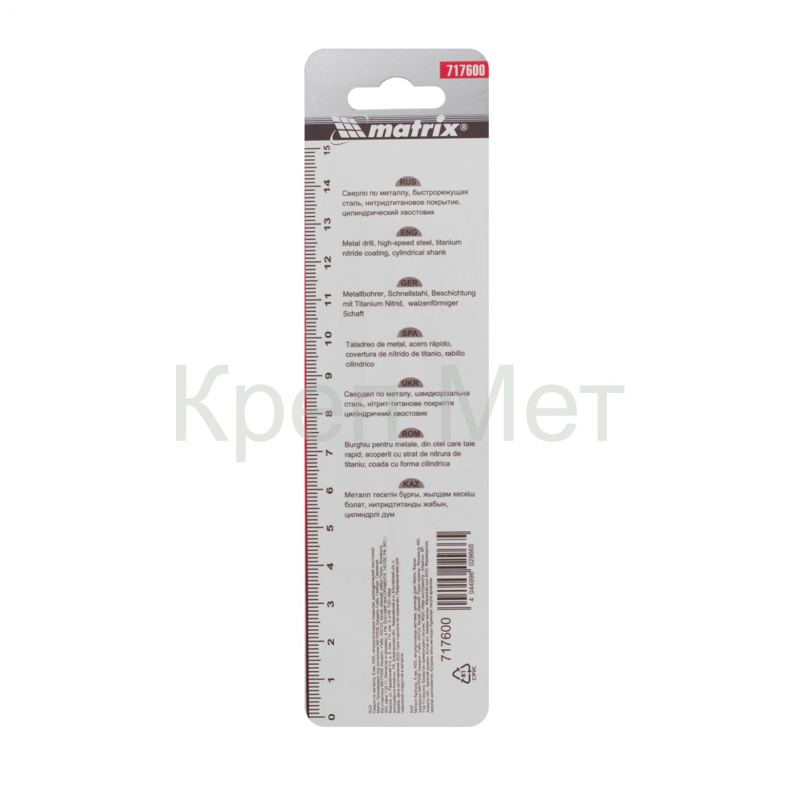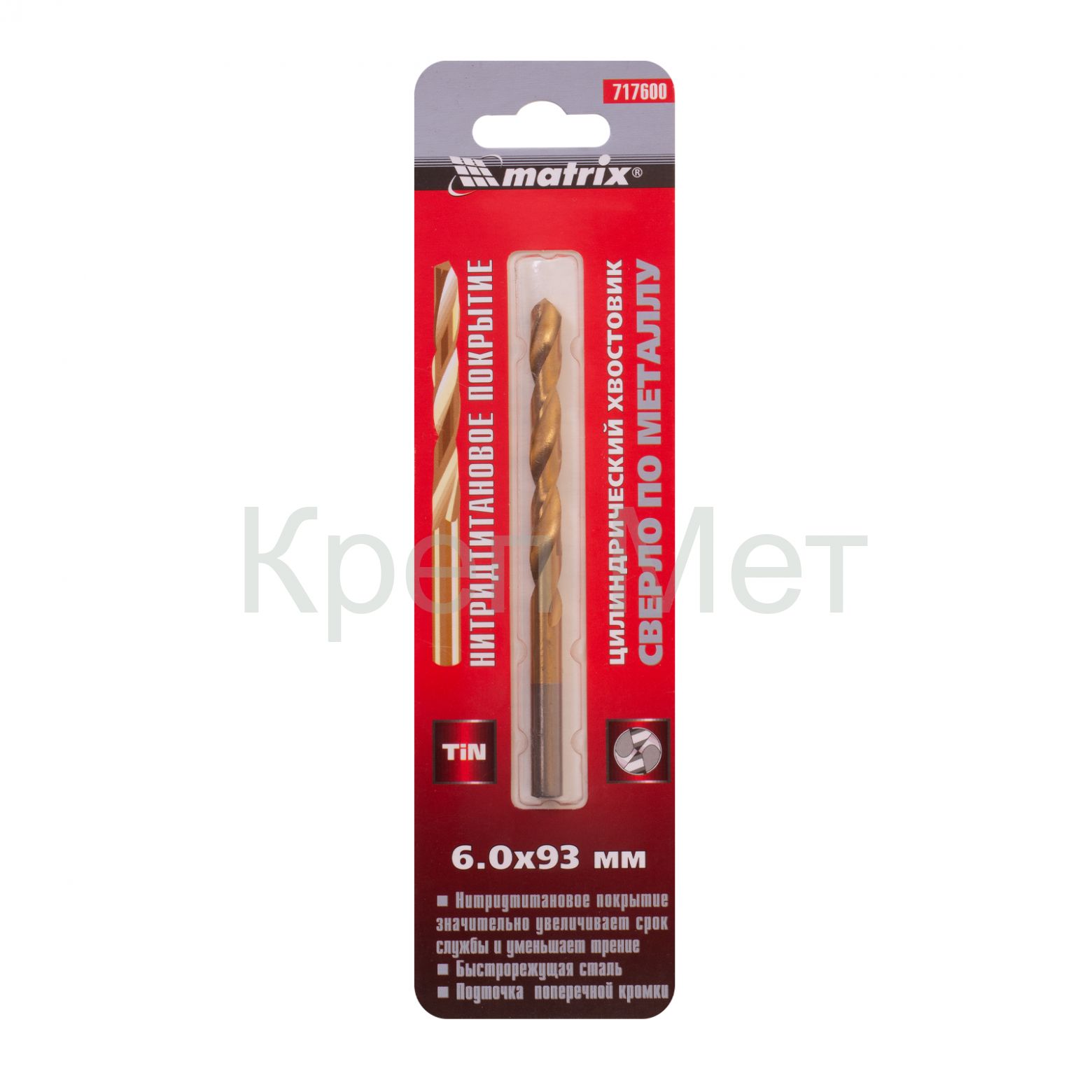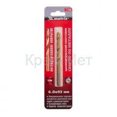 - Сверло по металлу, 6 мм, HSS, нитридтитановое покрытие, цилиндрический хвостовик Matrix