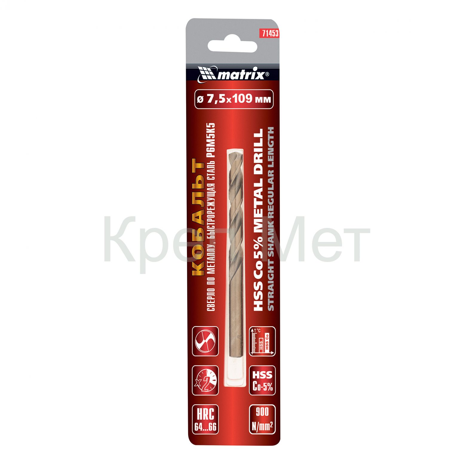 - Сверло по металлу, 7.5 мм, HSS Co-5% Matrix