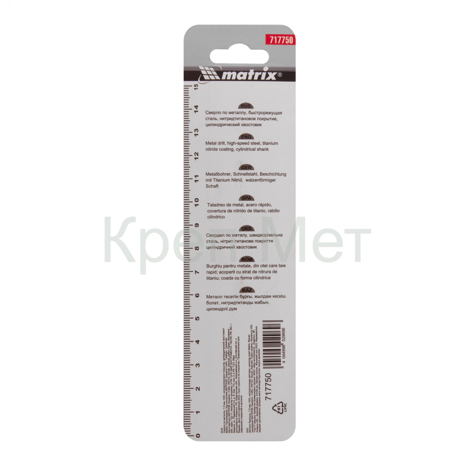 Сверло по металлу, 7.5 мм, HSS, нитридтитановое покрытие, цилиндрический хвостовик Matrix