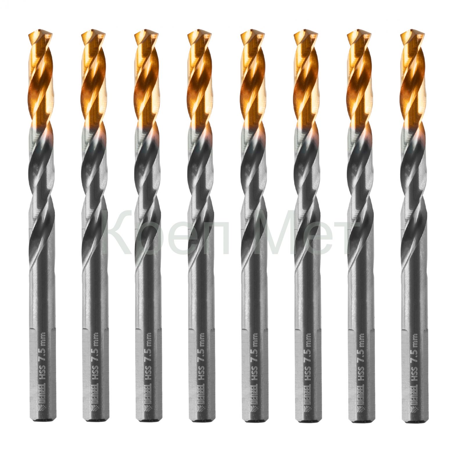 Сверло по металлу, 7,5 мм, HSS-Tin, Golden Tip, 8 шт. Denzel