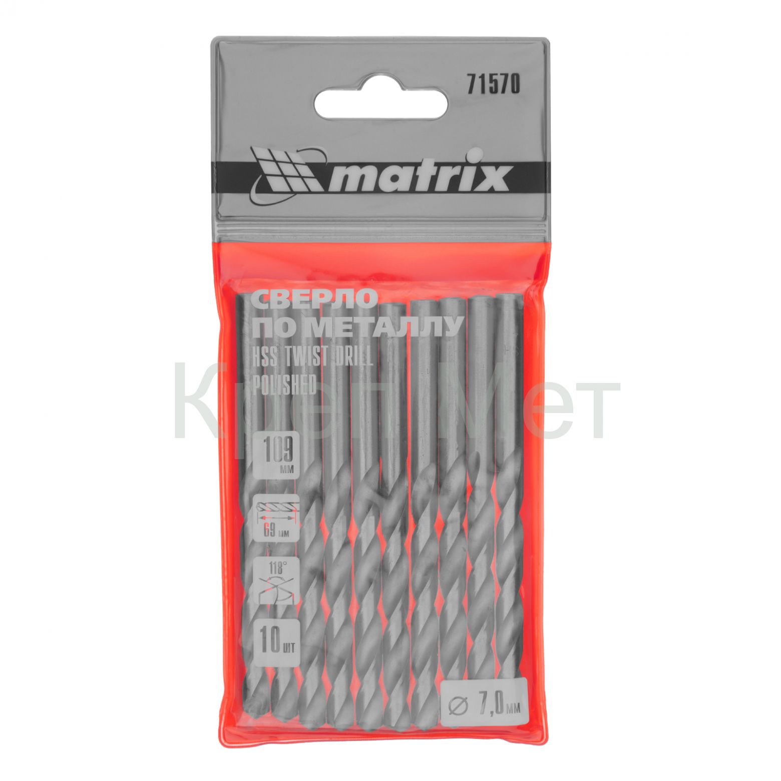 - Сверло по металлу, 7 мм, полированное, HSS, 10 шт, цилиндрический хвостовик Matrix