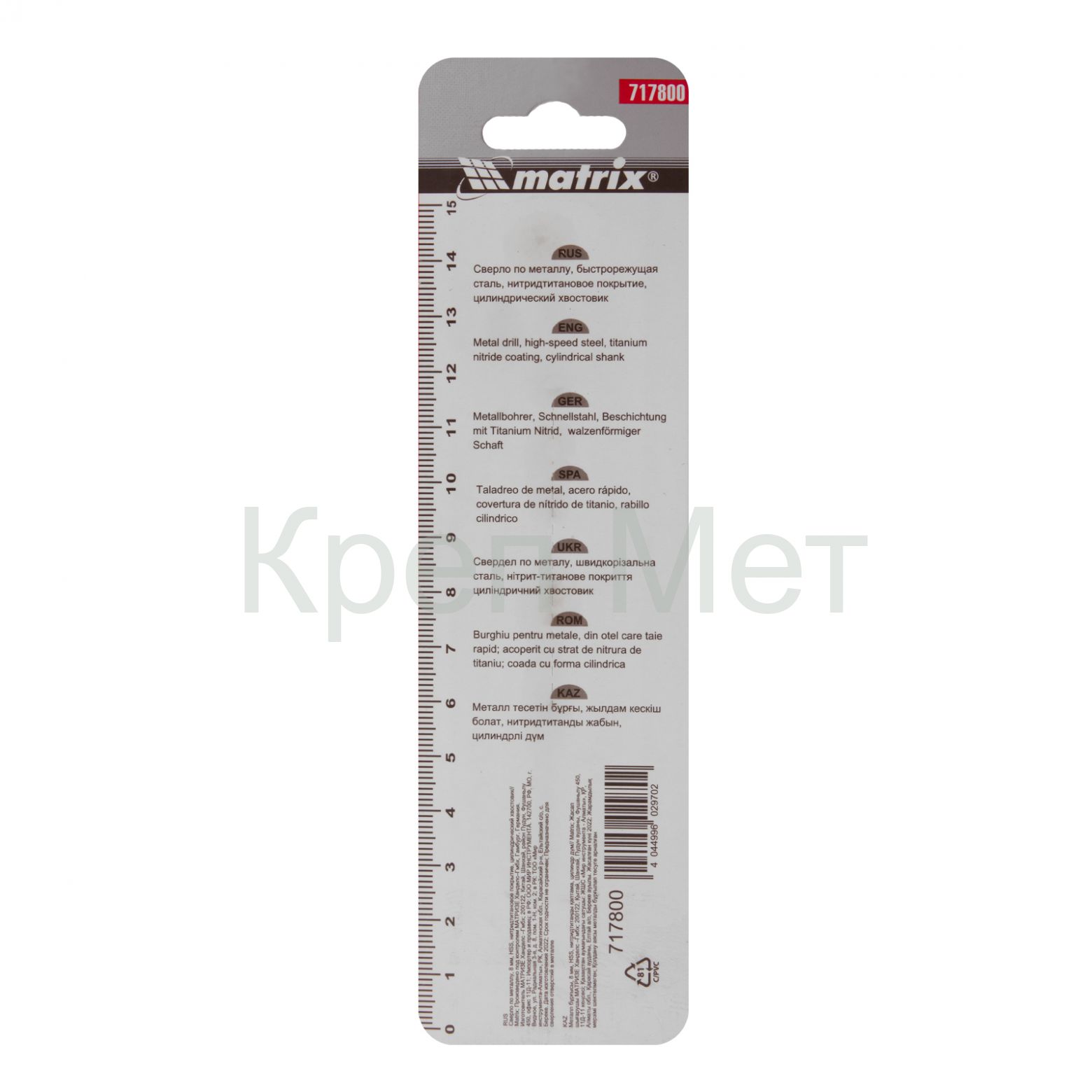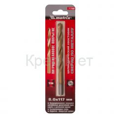 - Сверло по металлу, 8 мм, HSS, нитридтитановое покрытие, цилиндрический хвостовик Matrix