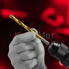 - Надежность — сверло изготовлено из универсальной быстрорежущей стали HSS, нитридтитановое покрытие защищает от коррозии и обеспечивает стойкость к перегреву.