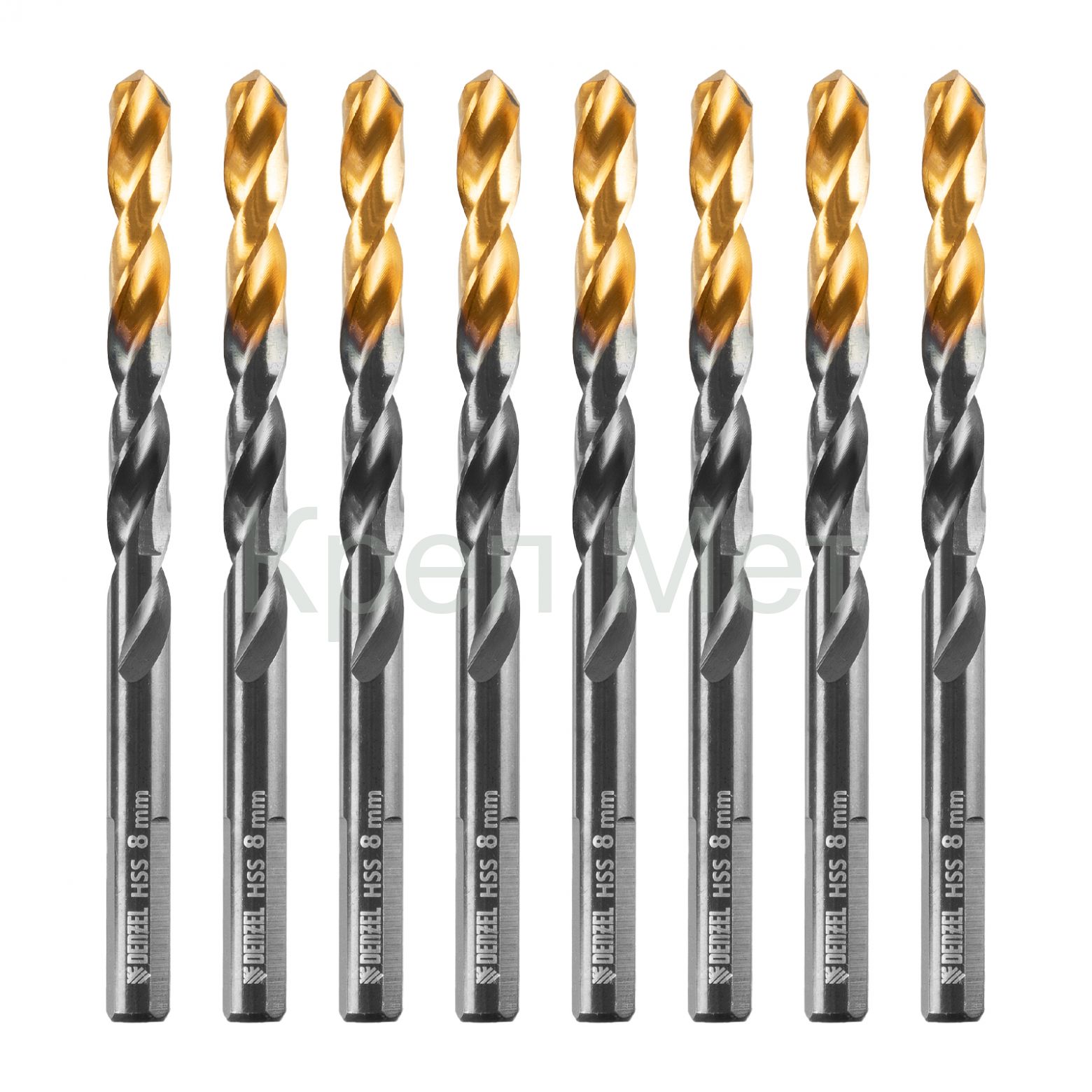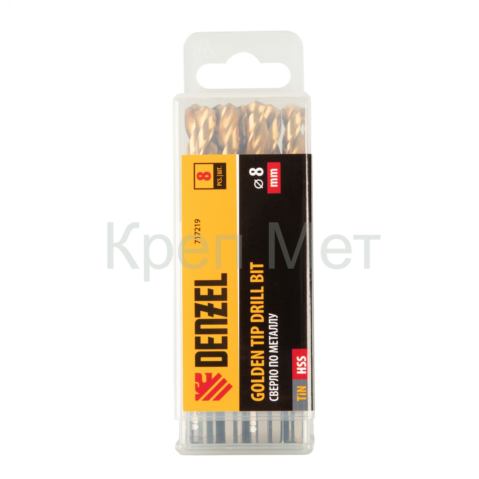 Сверло по металлу, 8 мм, HSS-Tin, Golden Tip, 8 шт. Denzel