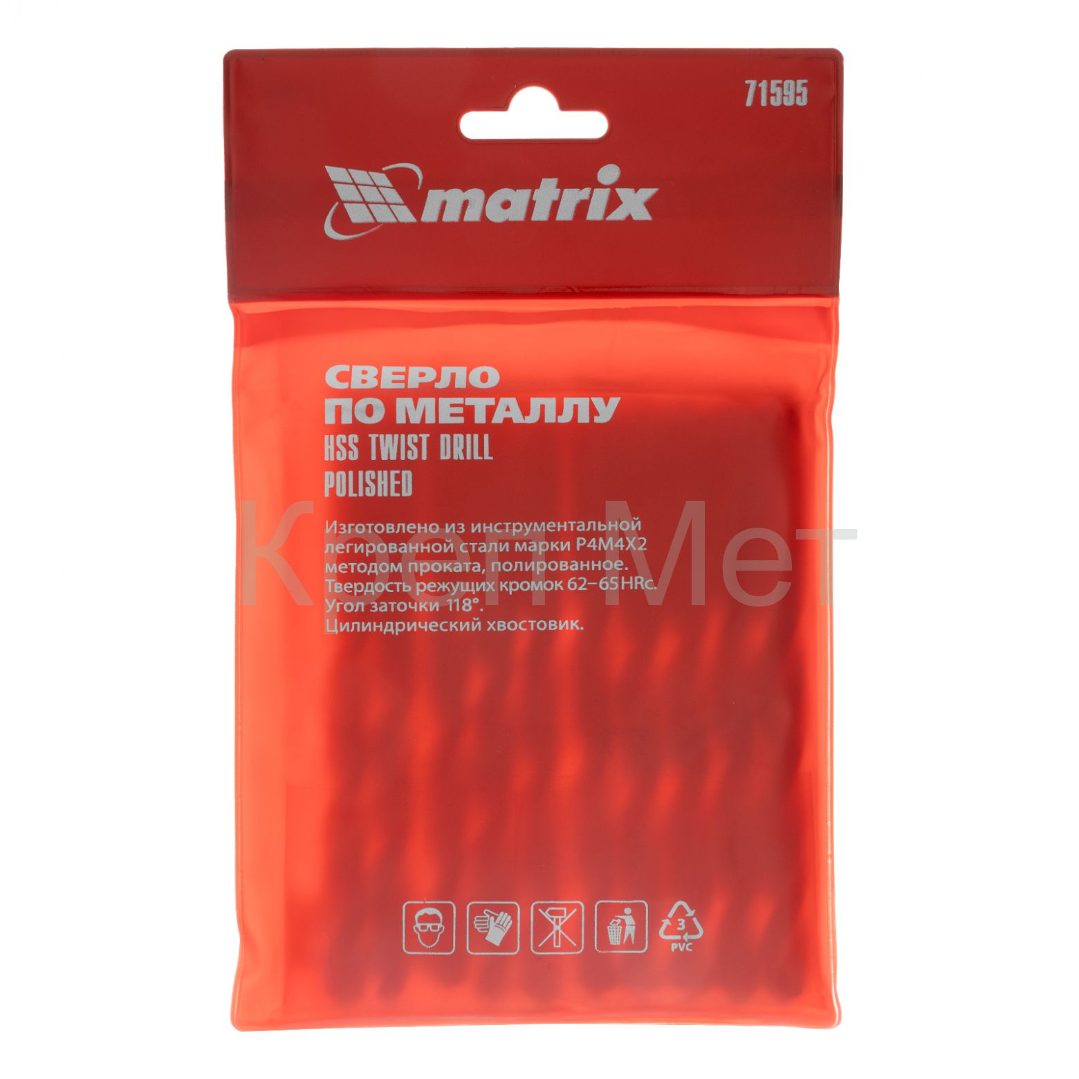 Сверло по металлу, 9.5 мм, полированное, HSS, 10 шт, цилиндрический хвостовик Matrix
