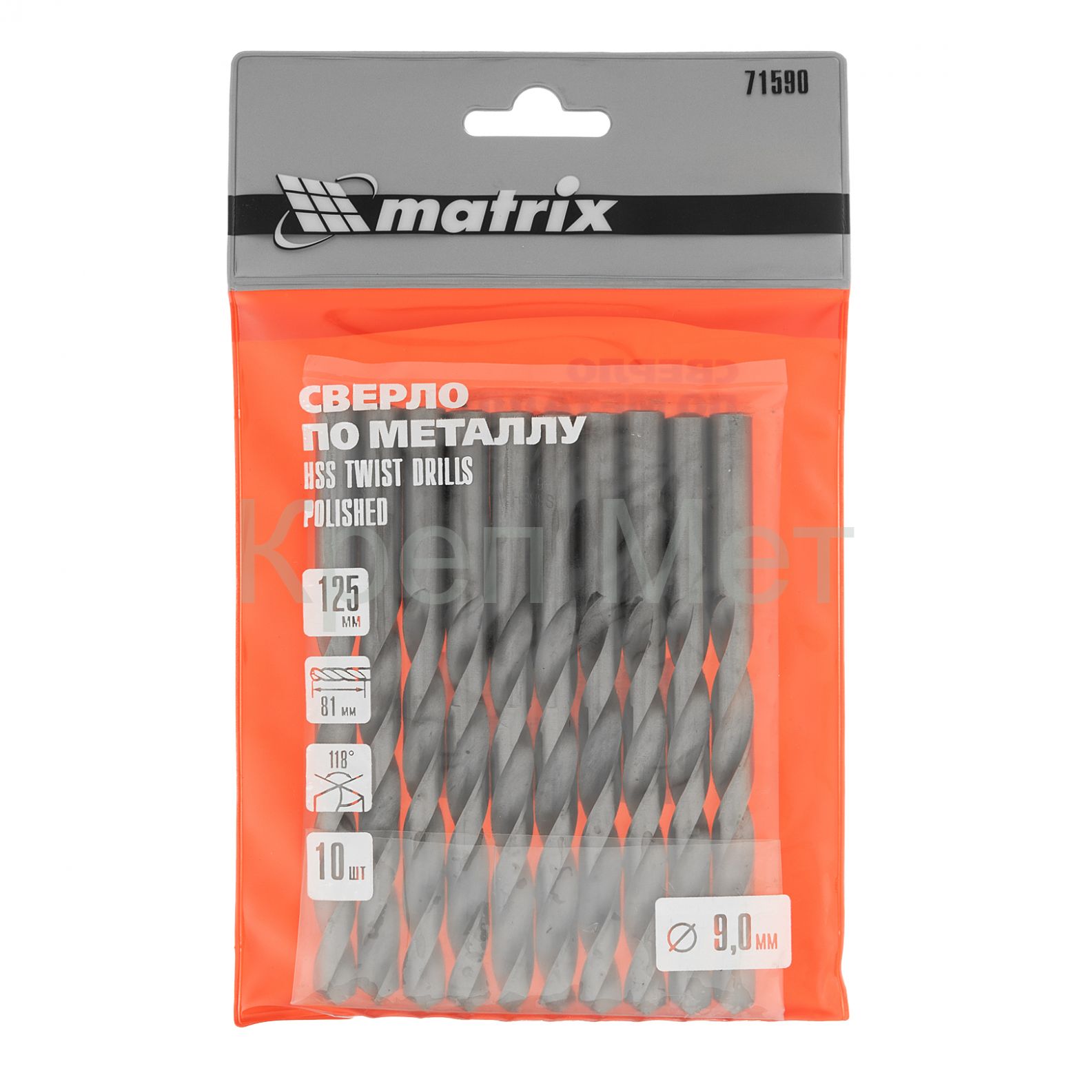 - Сверло по металлу, 9 мм, полированное, HSS, 10 шт, цилиндрический хвостовик Matrix