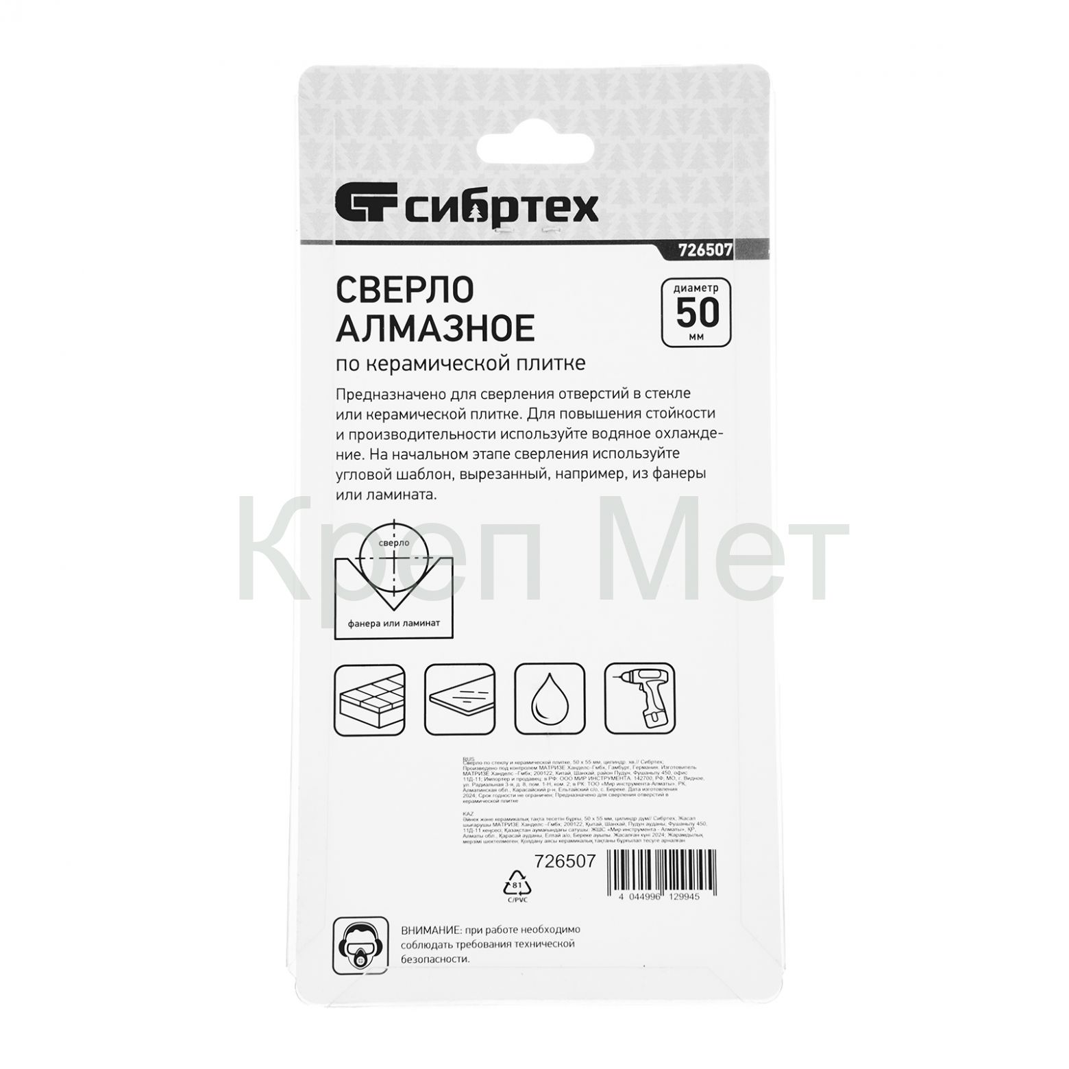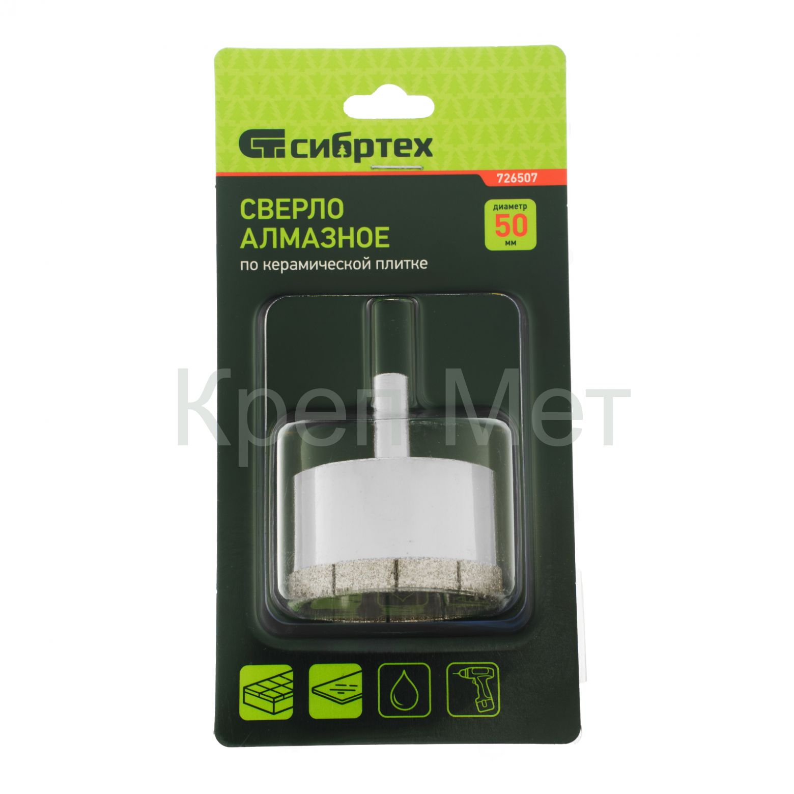 Сверло Сибртех 726507 размером 50 х 55 мм, с цилиндрическим хвостовиком, используется для получения ровных отверстий без сколов в стекле и керамической плитке. Устанавливается в патрон дрели или шуруповерта, работающих в диапазоне 350-700 об/мин. Во время работы рекомендуется применять водяное охлаждение — это существенно увеличит ресурс оснастки. Использование кондуктора (арт. 72830) позволяет точно позиционировать сверло и облегчает засверливание. Оснастка подходит для выполнения работ небольшого объема и рекомендована для использования в быту.