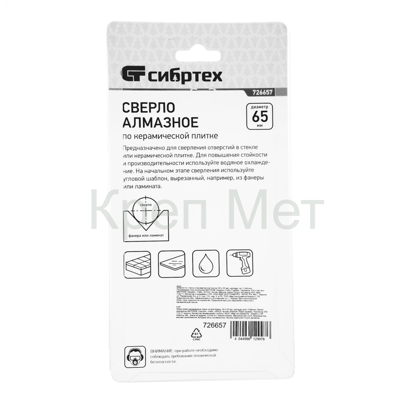 - Сверло по стеклу и керамической плитке, 65 х 55 мм, цилиндрический хвостовик Сибртех