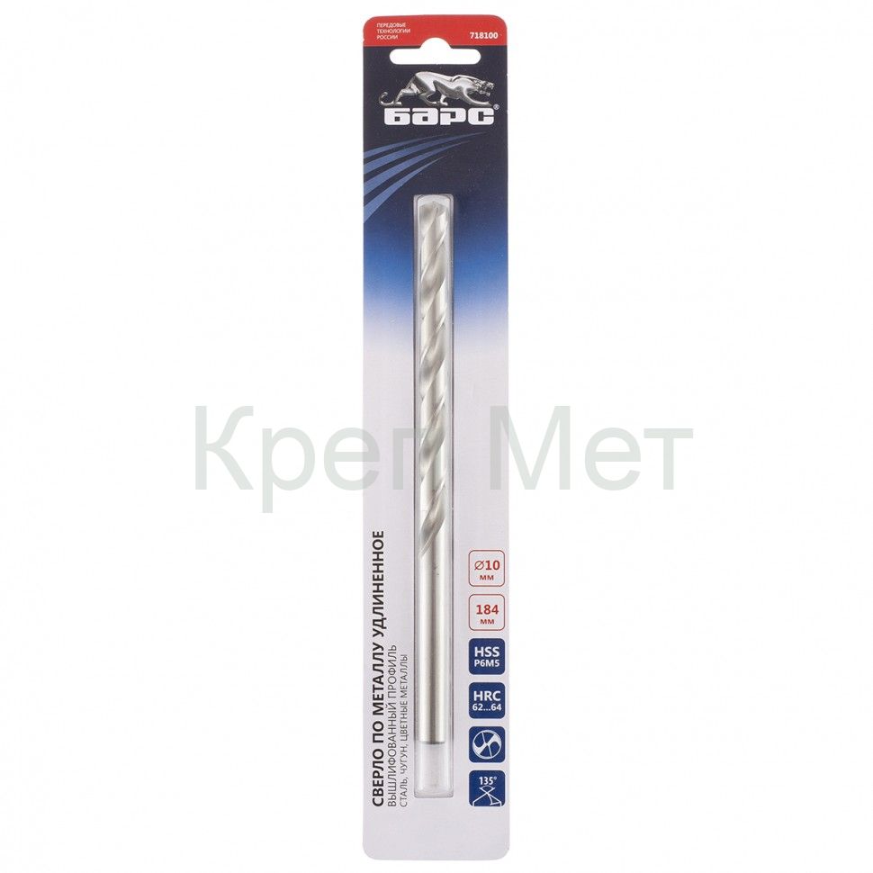 - Сверло спиральное по металлу, 10 х 184 мм, Р6М5, удлиненное Барс