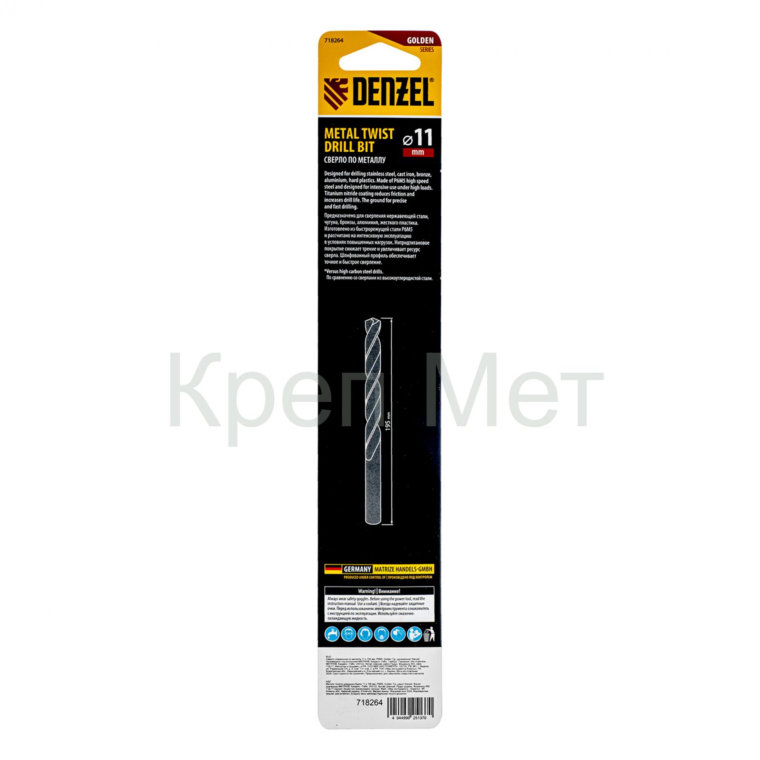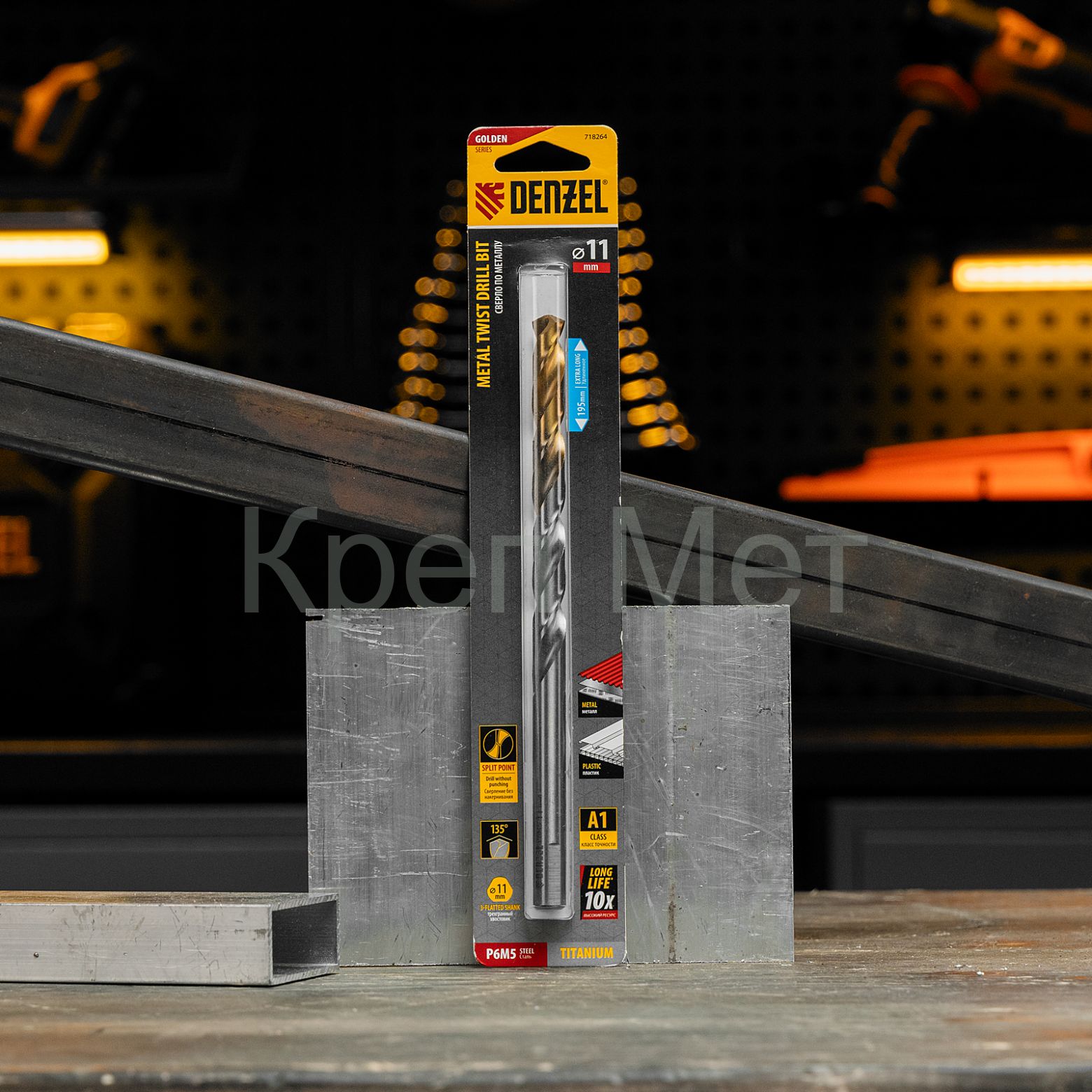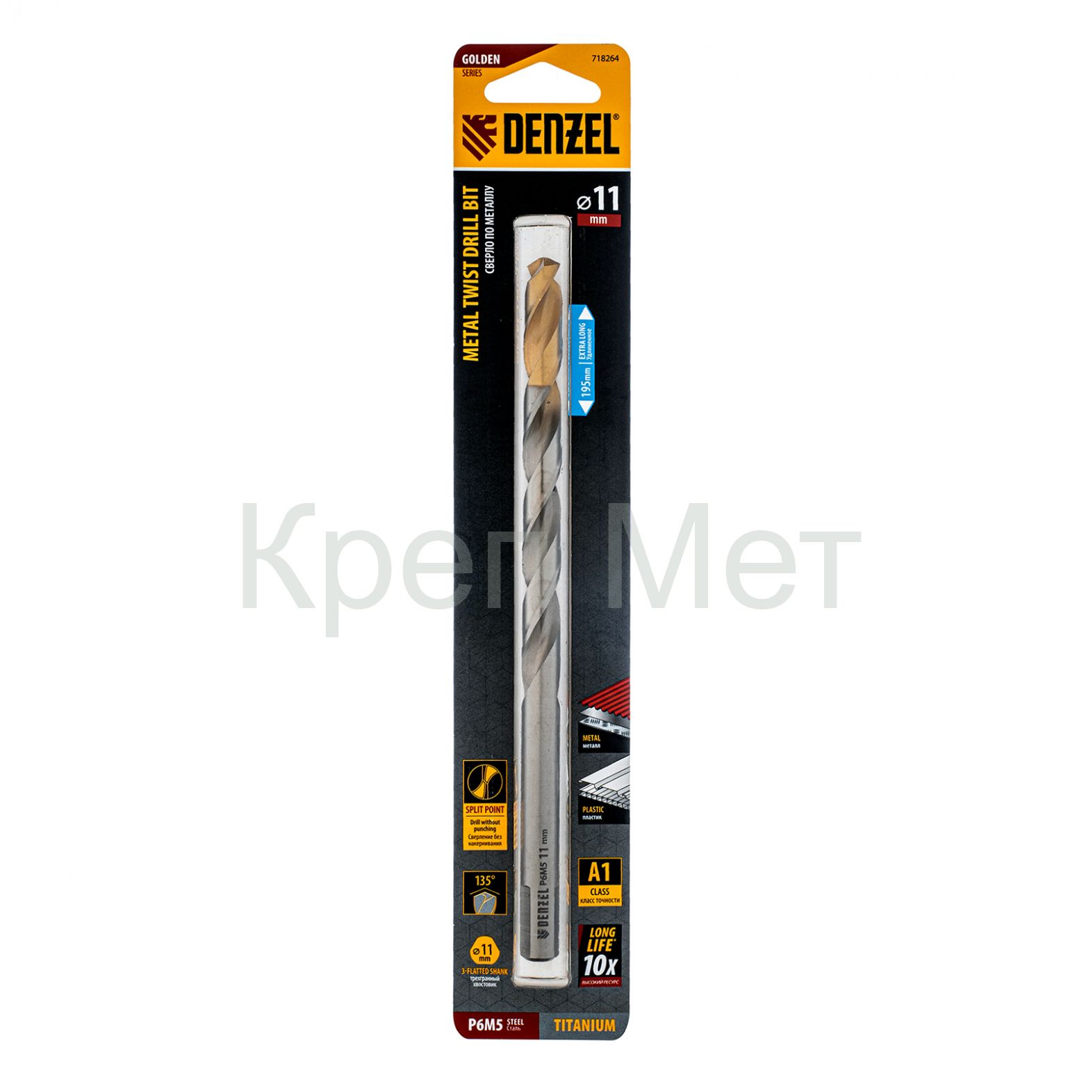 Сверло спиральное по металлу 11 х 195 мм, Р6М5, Golden Tip, удлиненное Denzel