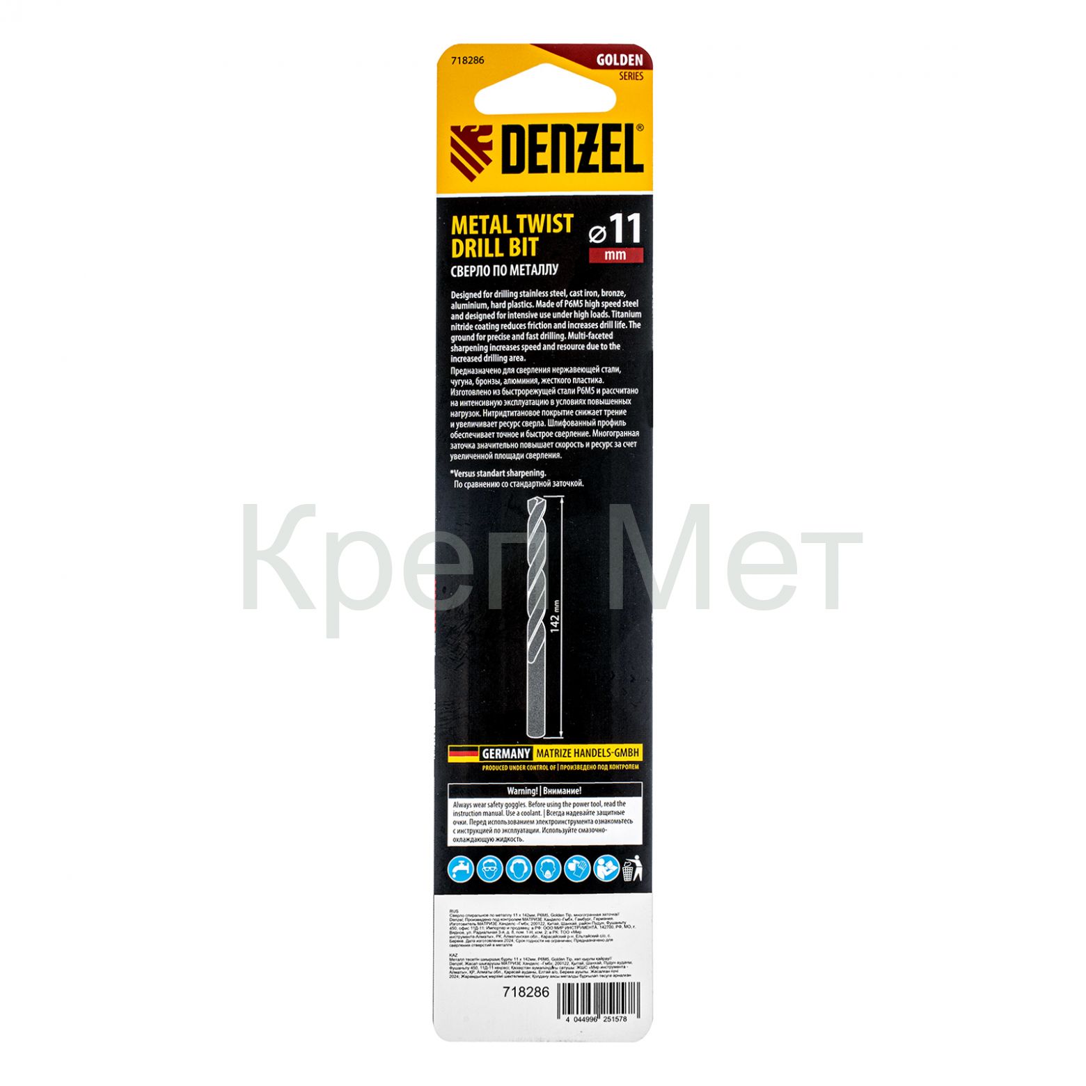 - Сверло спиральное по металлу 11 x 142мм, Р6М5, Golden Tip, многогранная заточка Denzel