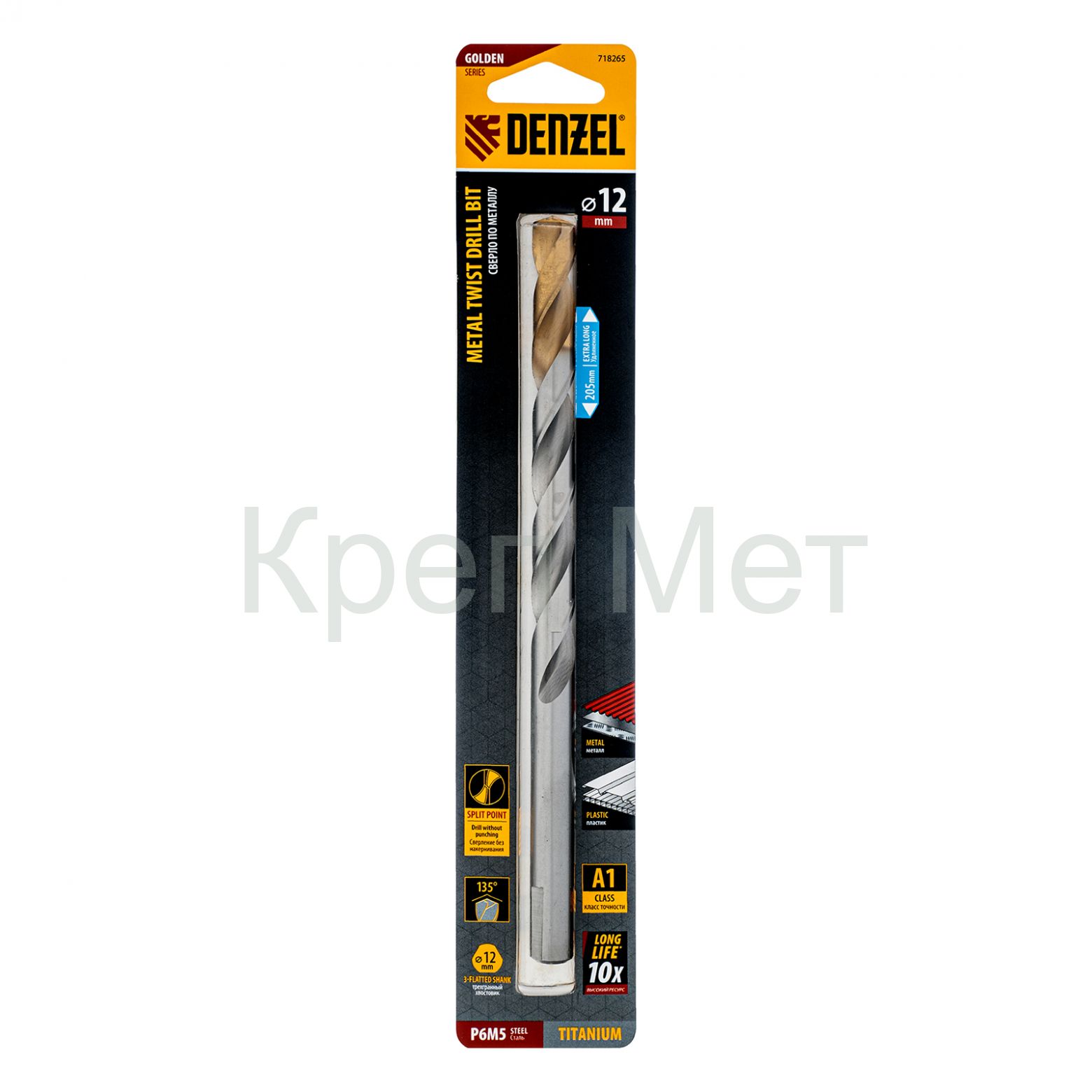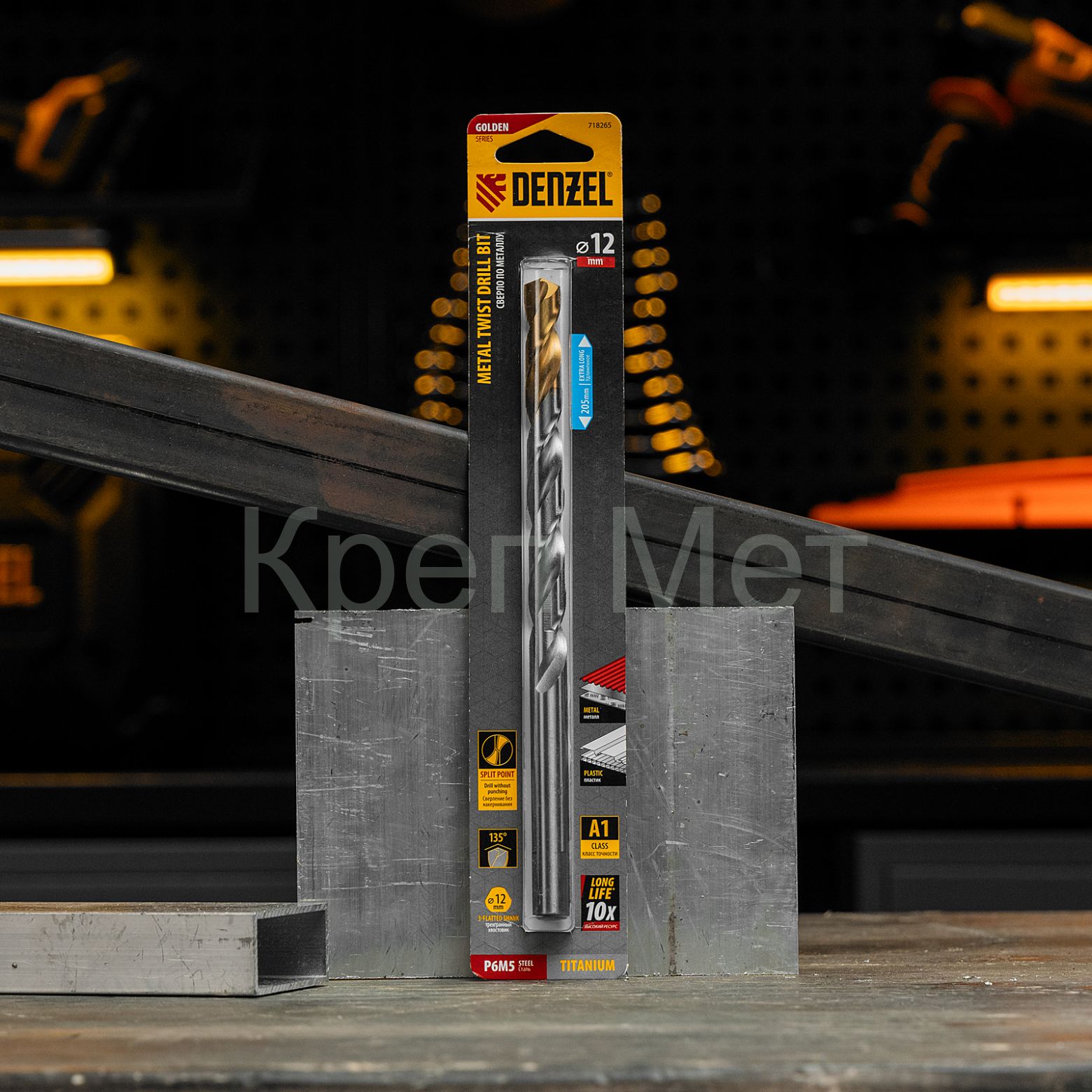 Сверло спиральное по металлу 12 x 205 мм, Р6М5, Golden Tip, удлиненное Denzel