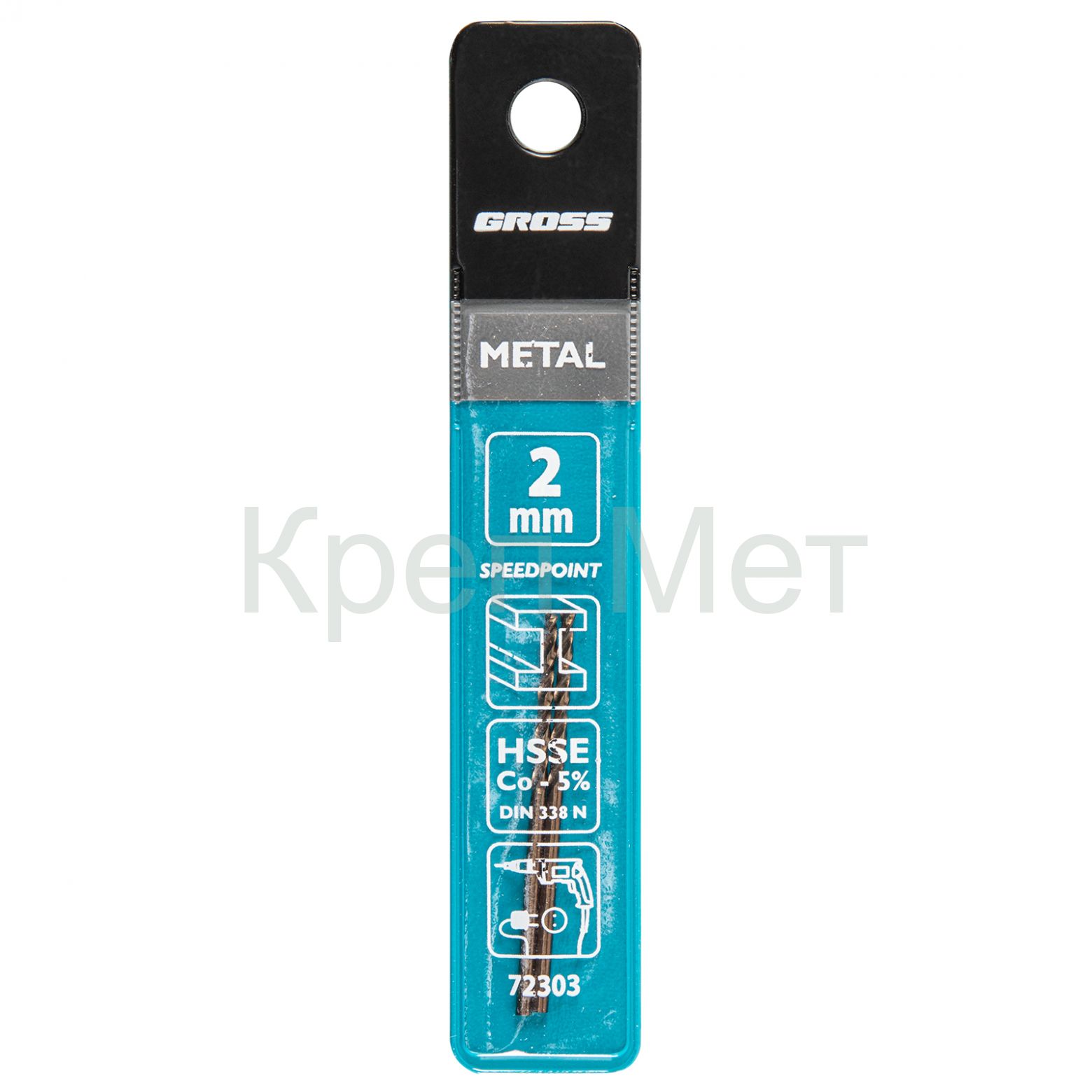 Сверло спиральное по металлу, 2 мм, HSS-Co, 2 шт Gross