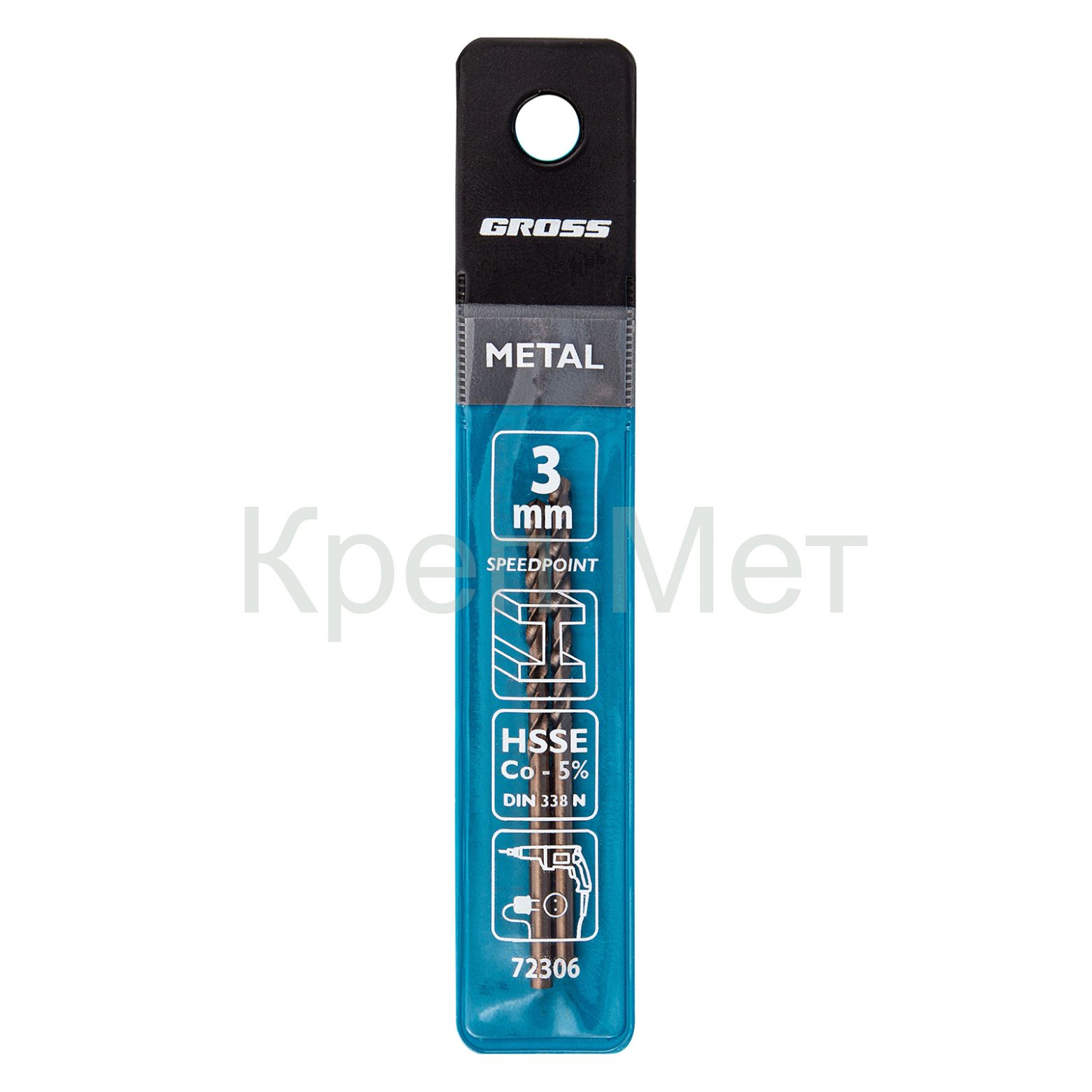 Сверло спиральное по металлу, 3 мм, HSS-Co, 2 шт Gross