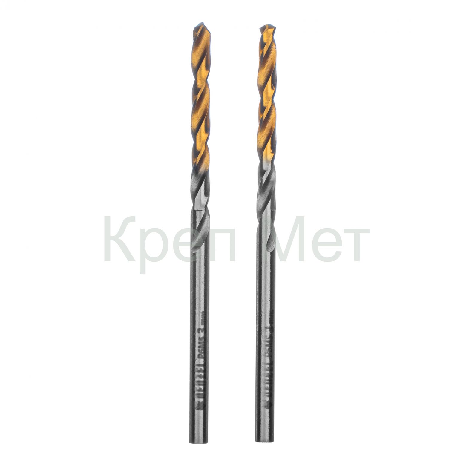 Сверло спиральное по металлу 3 x 60 мм, Р6М5, Golden Tip , 2шт. Denzel