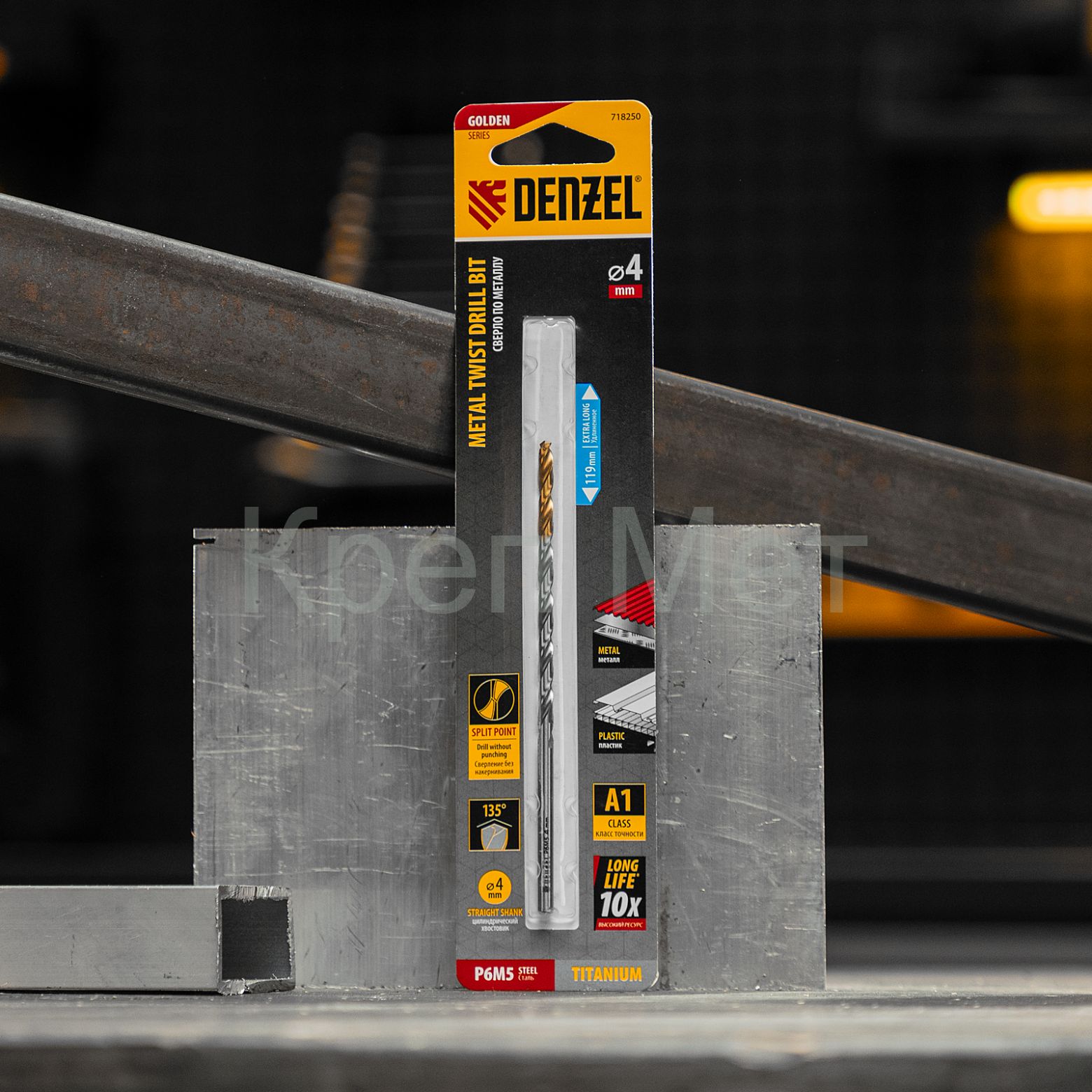 Сверло спиральное по металлу 4 х 119 мм, Р6М5, Golden Tip, удлиненное Denzel