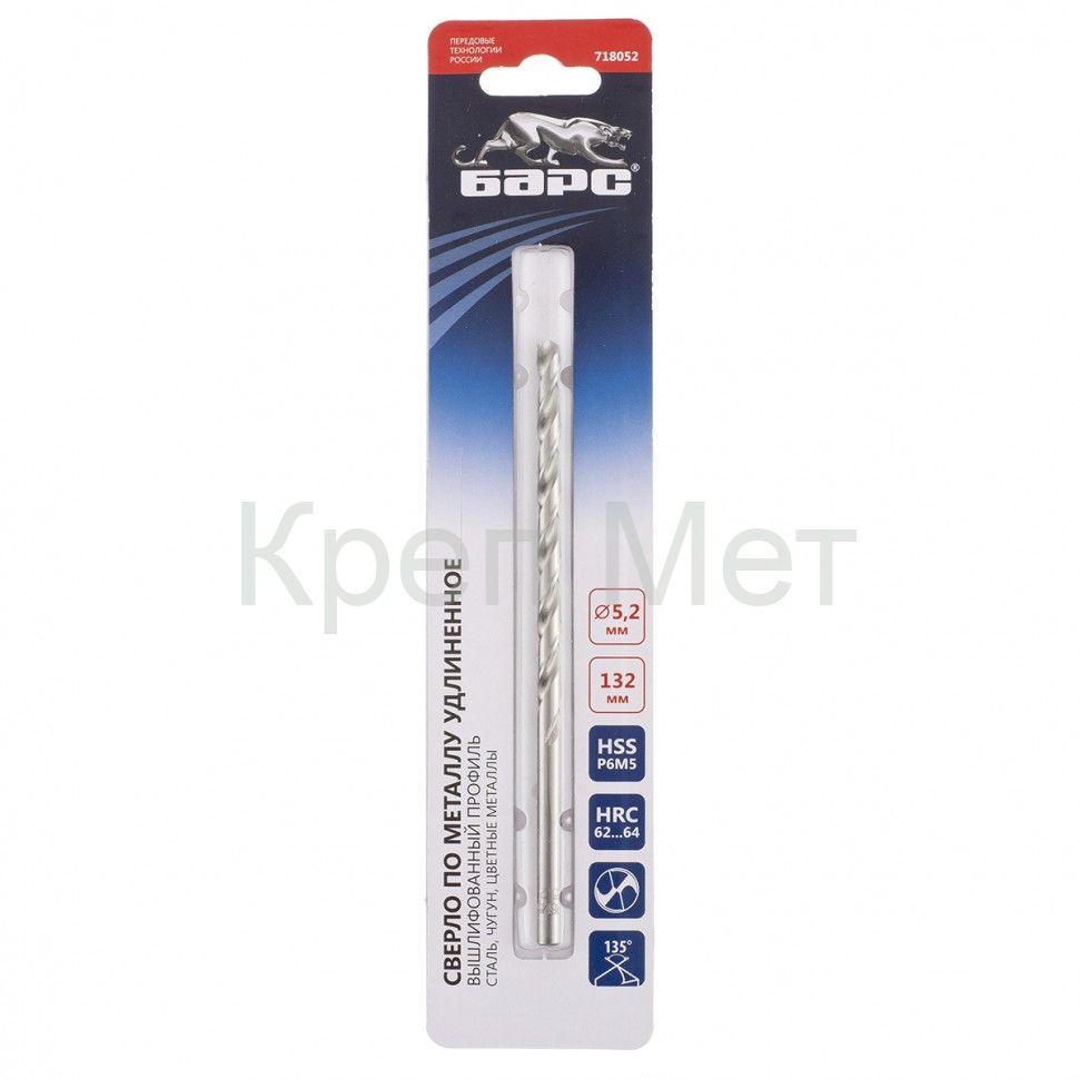 - Сверло спиральное по металлу, 5.2 х 132 мм, Р6М5, удлиненное Барс