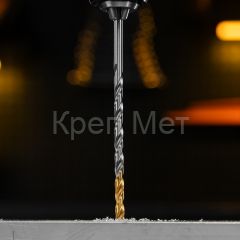 - Высокая производительность — поверхность сверла покрыта нитридом титана, что снижает трение о стенки отверстия и уменьшает нагрев, а также улучшает отвод стружки.