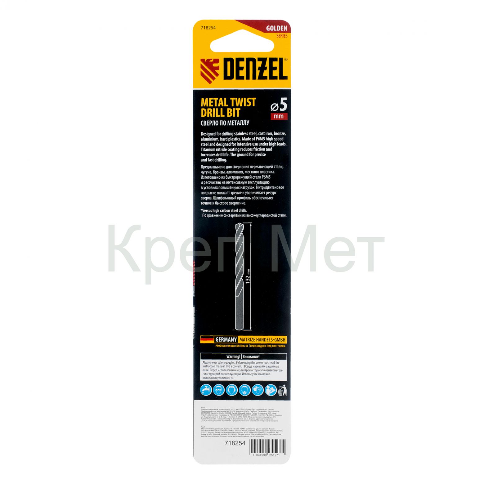 Сверло спиральное по металлу 5 х 132 мм, Р6М5, Golden Tip, удлиненное Denzel