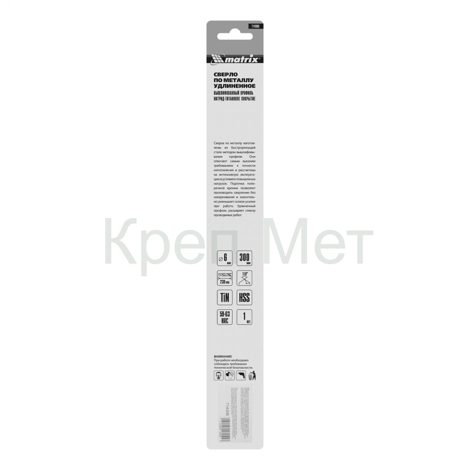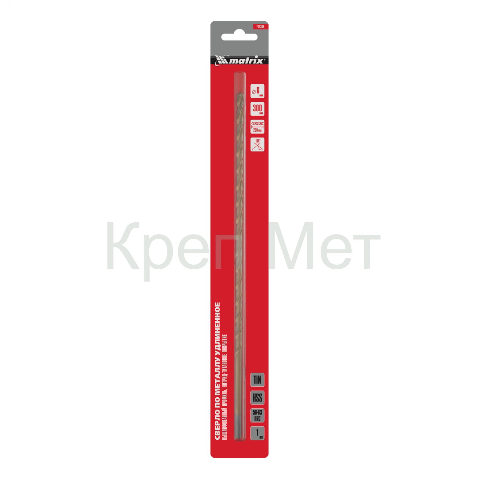 - Сверло спиральное по металлу 6 x 300 мм, HSS, нитридтитановое покрытие Matrix