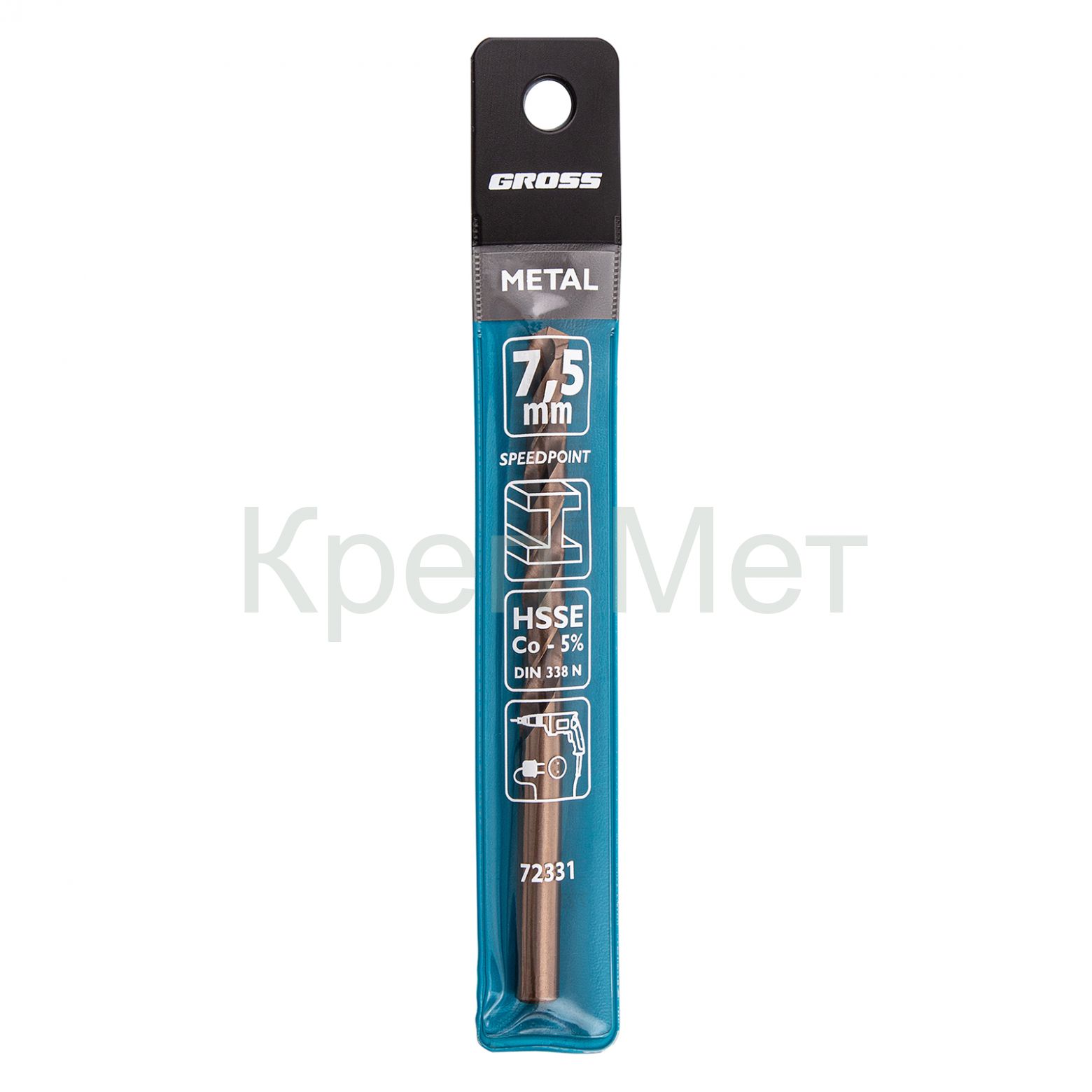 Сверло спиральное по металлу, 7.5 мм, HSS-Co Gross