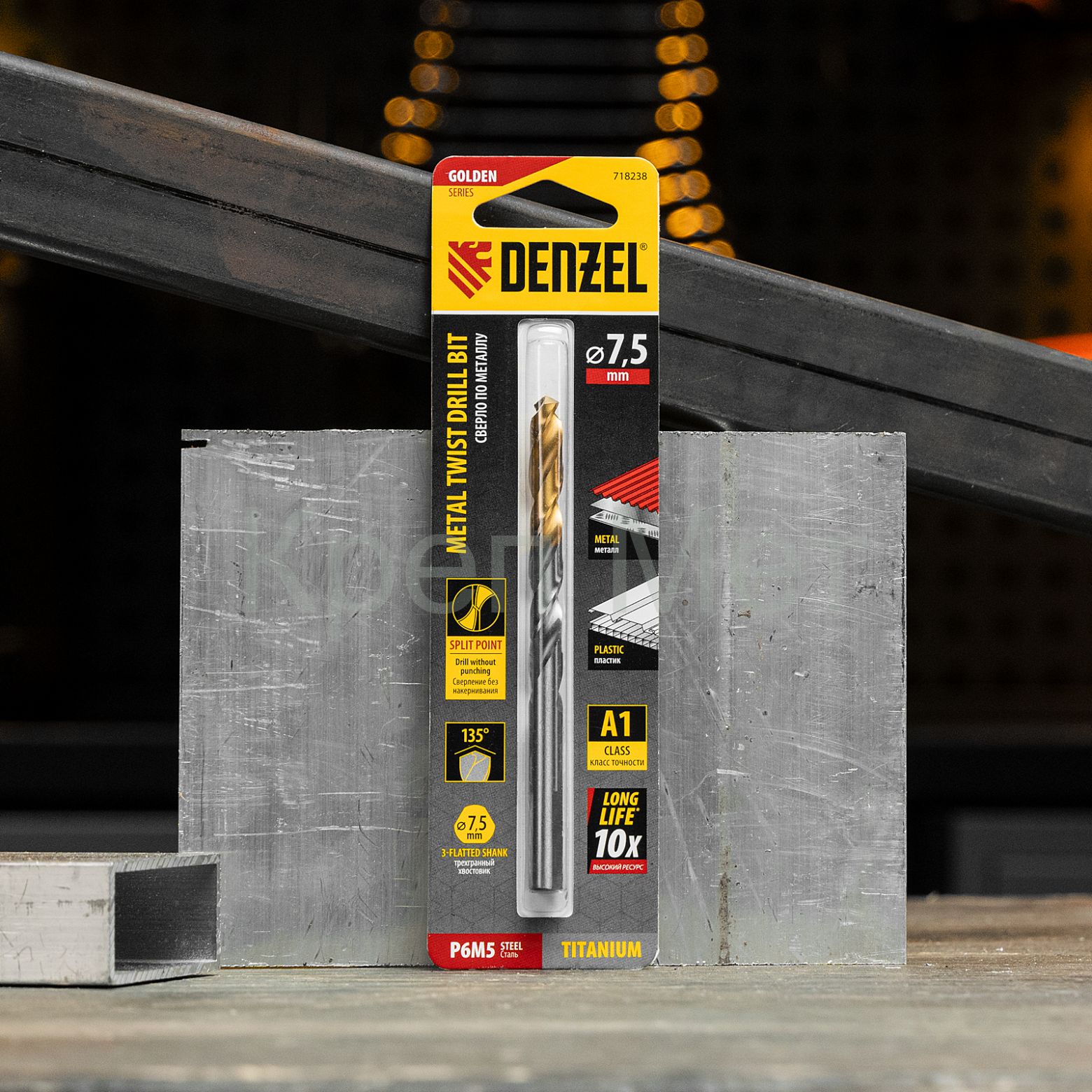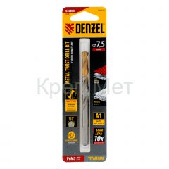 Сверло спиральное по металлу 7,5 x 109 мм, Р6М5, Golden Tip Denzel
