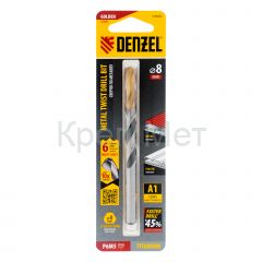 Сверло спиральное по металлу 8 x 117мм, Р6М5, Golden Tip, многогранная заточка Denzel
