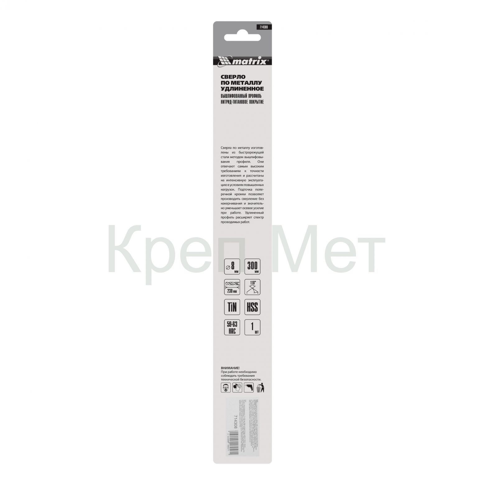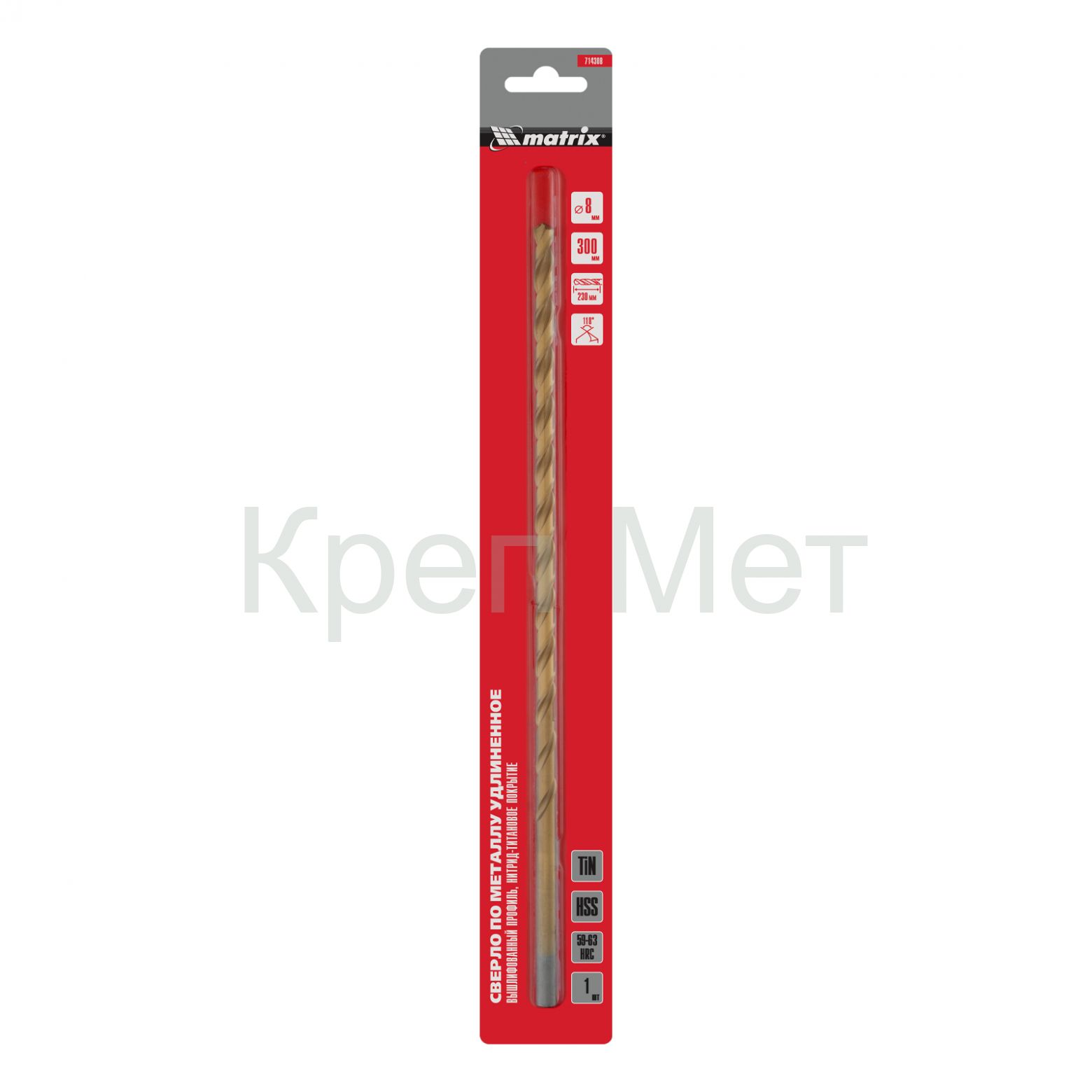 Сверло спиральное по металлу 8 x 300 мм, HSS, нитридтитановое покрытие Matrix