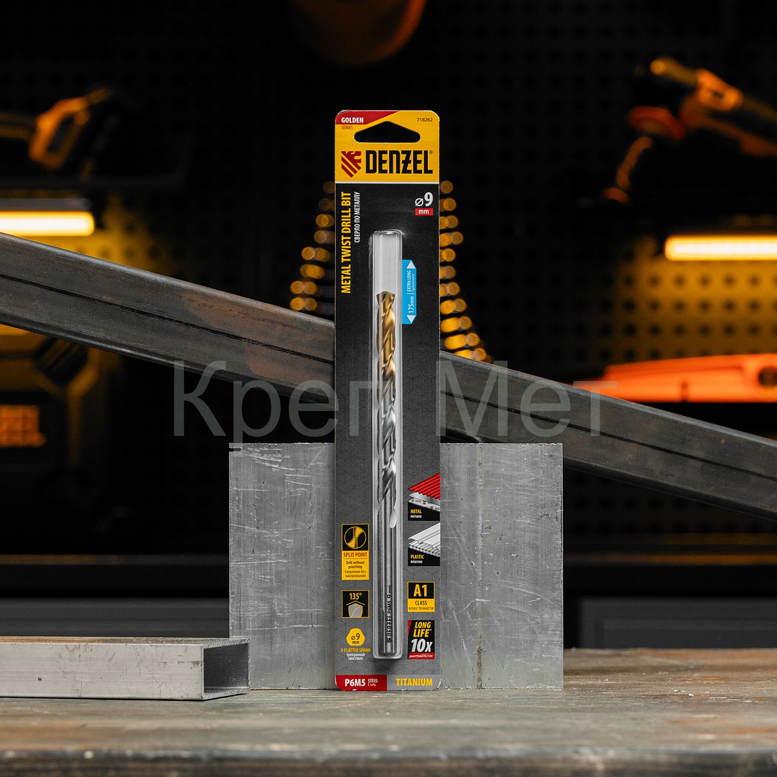 - Сверло спиральное по металлу 9 х 175 мм, Р6М5, Golden Tip, удлиненное Denzel