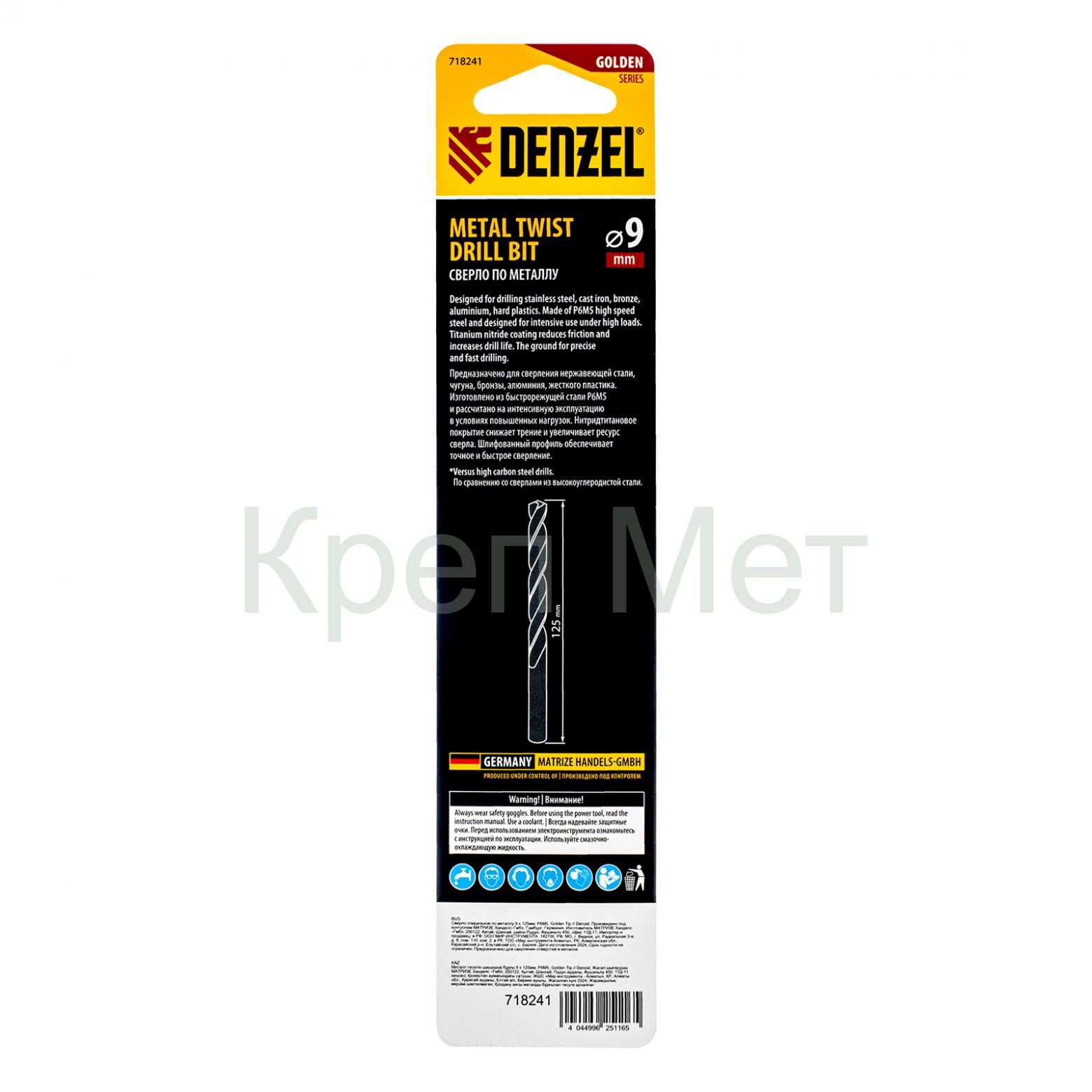 - Сверло спиральное по металлу 9 x 125 мм, Р6М5, Golden Tip Denzel
